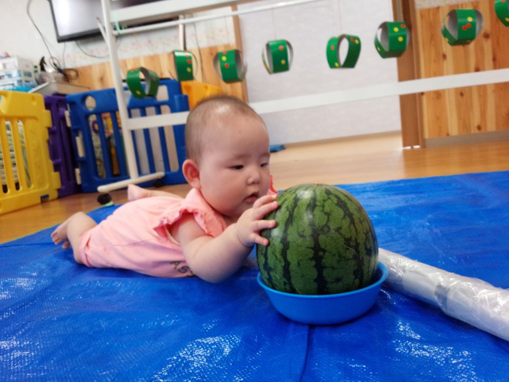 スイカの前でハイチーズ📷