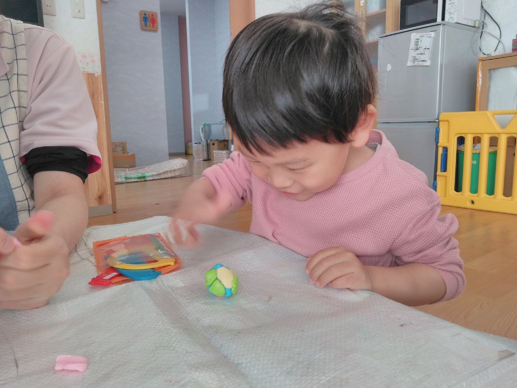 登園後ははるな先生が持ってきてくれたカラフル粘土で遊びました(*^▽^*)