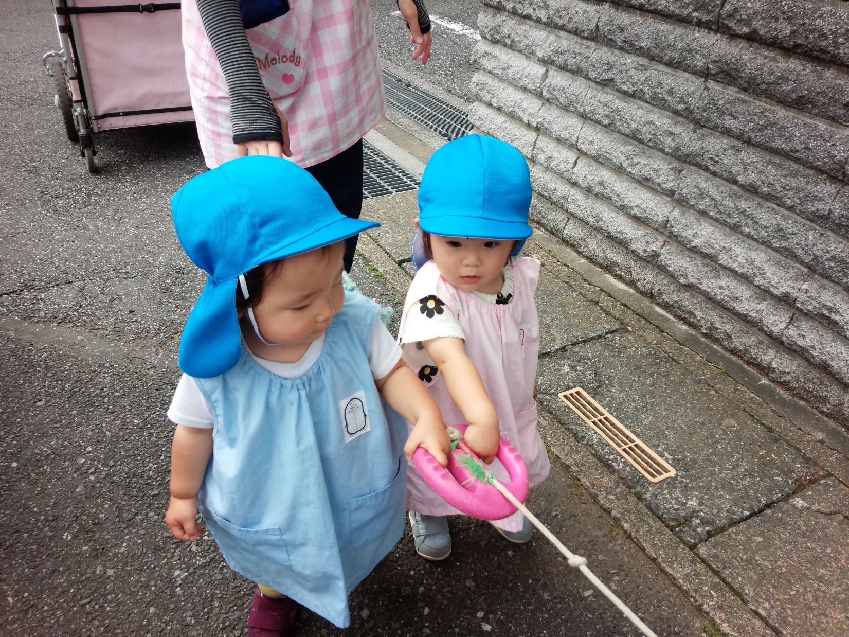 うさぎ組さんもお散歩ロープを持って頑張って歩く練習です🎵