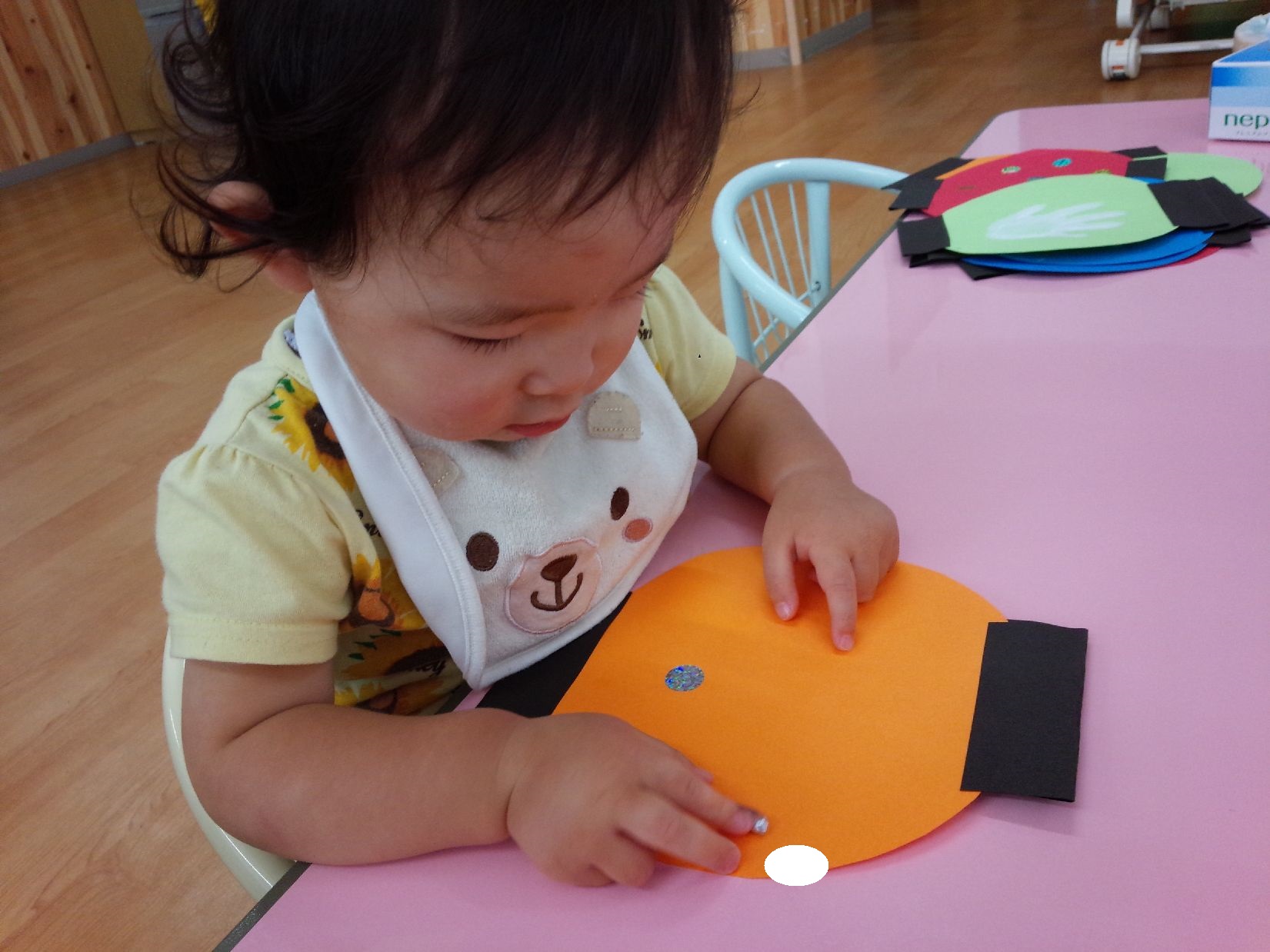 お部屋に戻ってからうさぎ組さんはシール貼りに挑戦♪