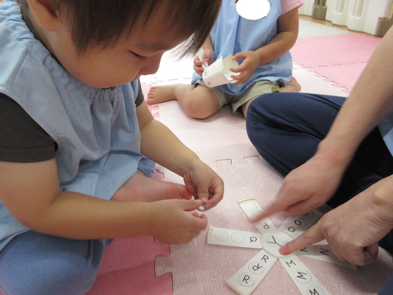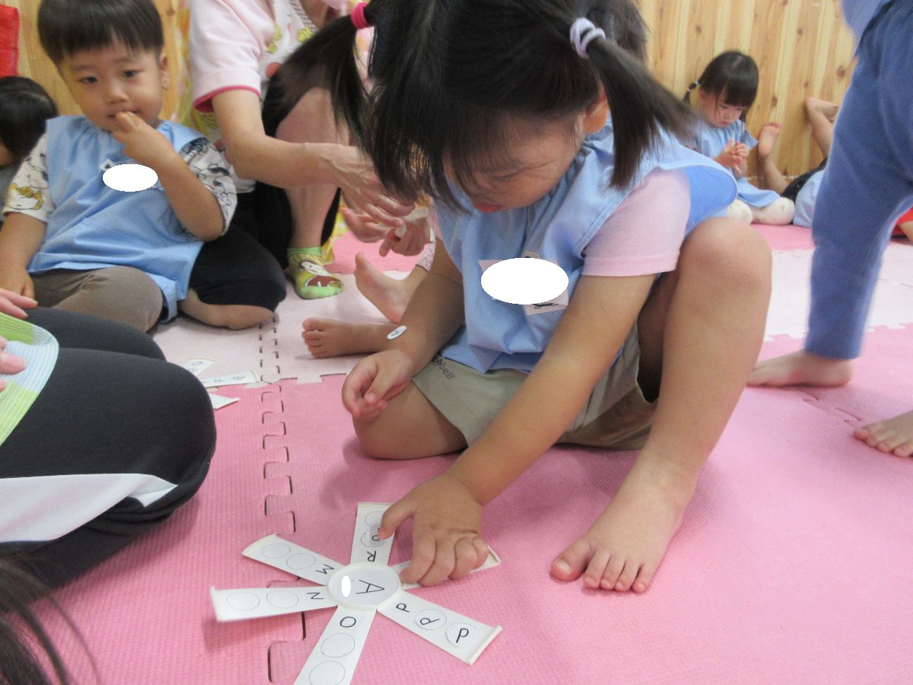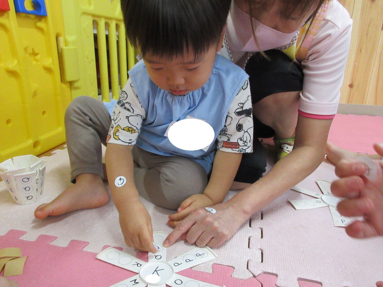 アルファベットのシール貼りも