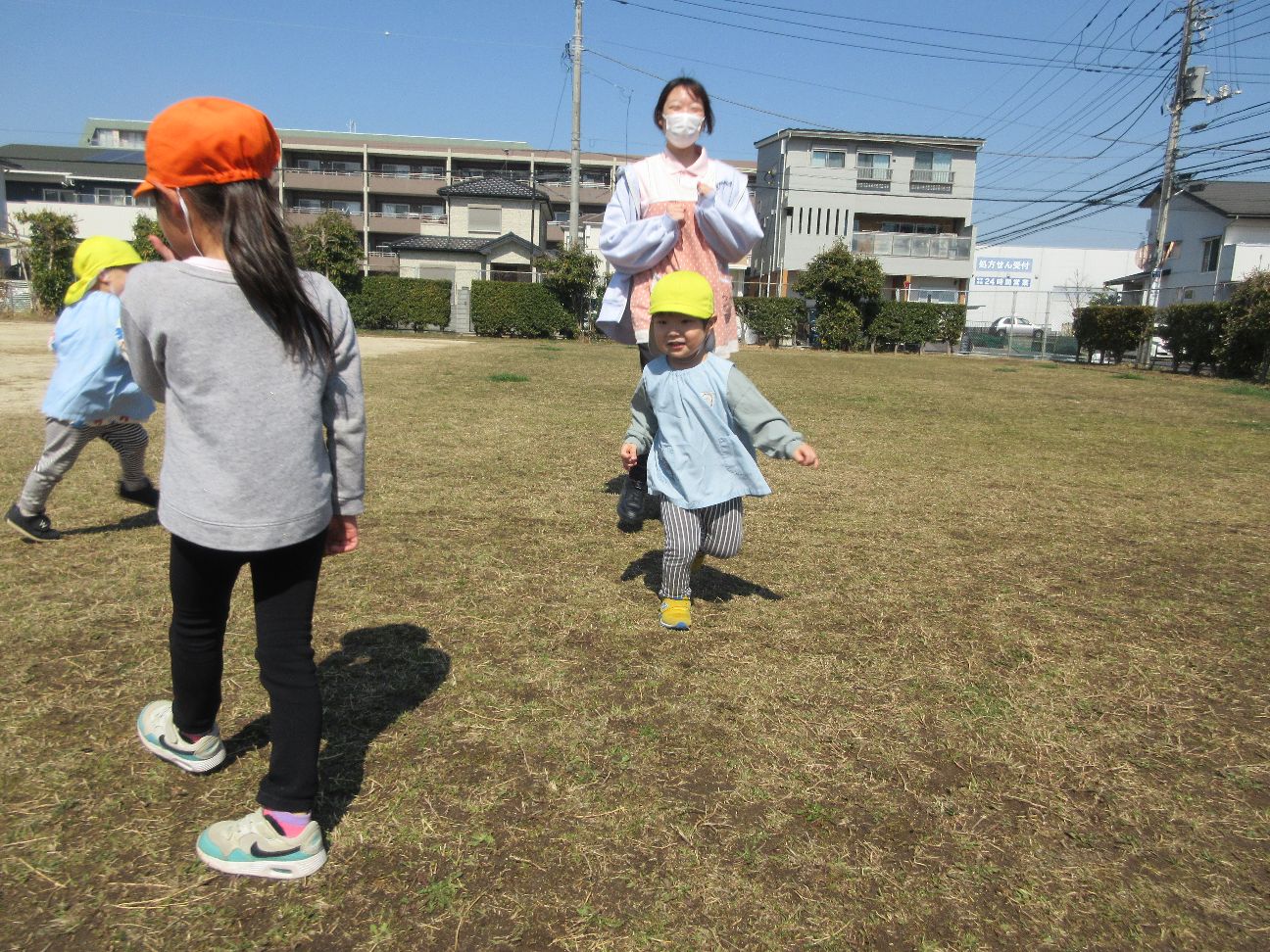 広場に移動してかけっこやお花摘み、お絵描きで遊びました(^^♪