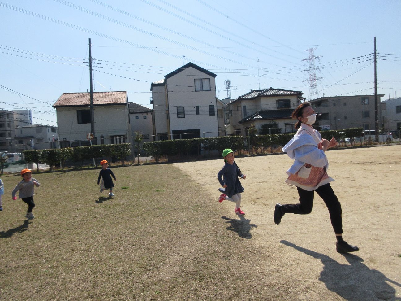 幼稚園のお友だちは走るのが早くて追いかけるのも逃げるのも大変です( ´艸`)笑