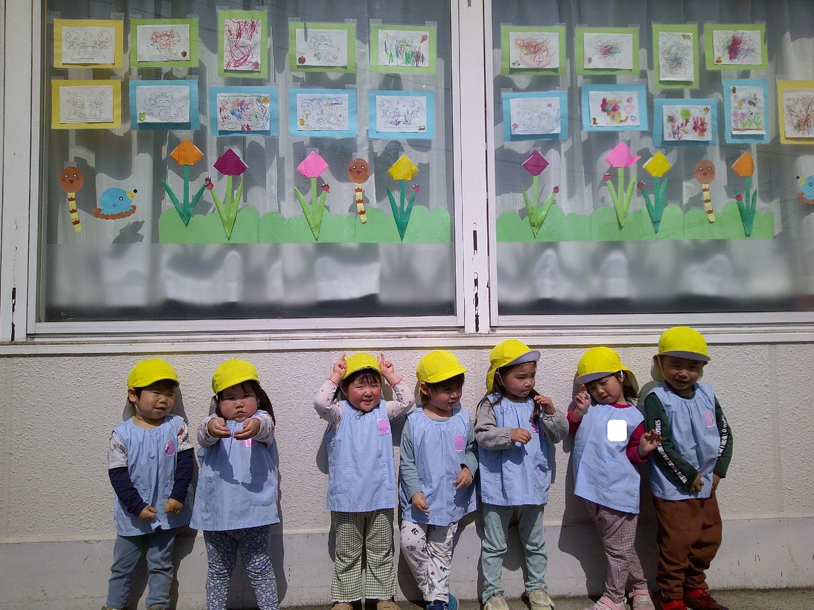 🌷お天気がよかったので、チューリップの製作とぬりえの前でパシャリ📷🌷