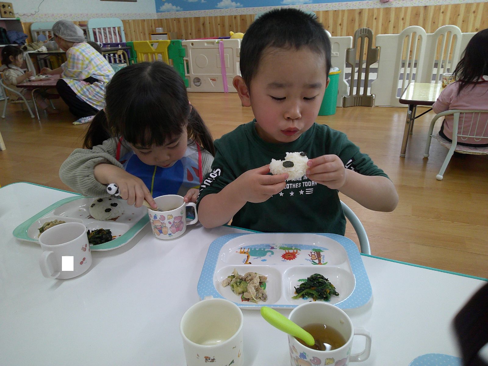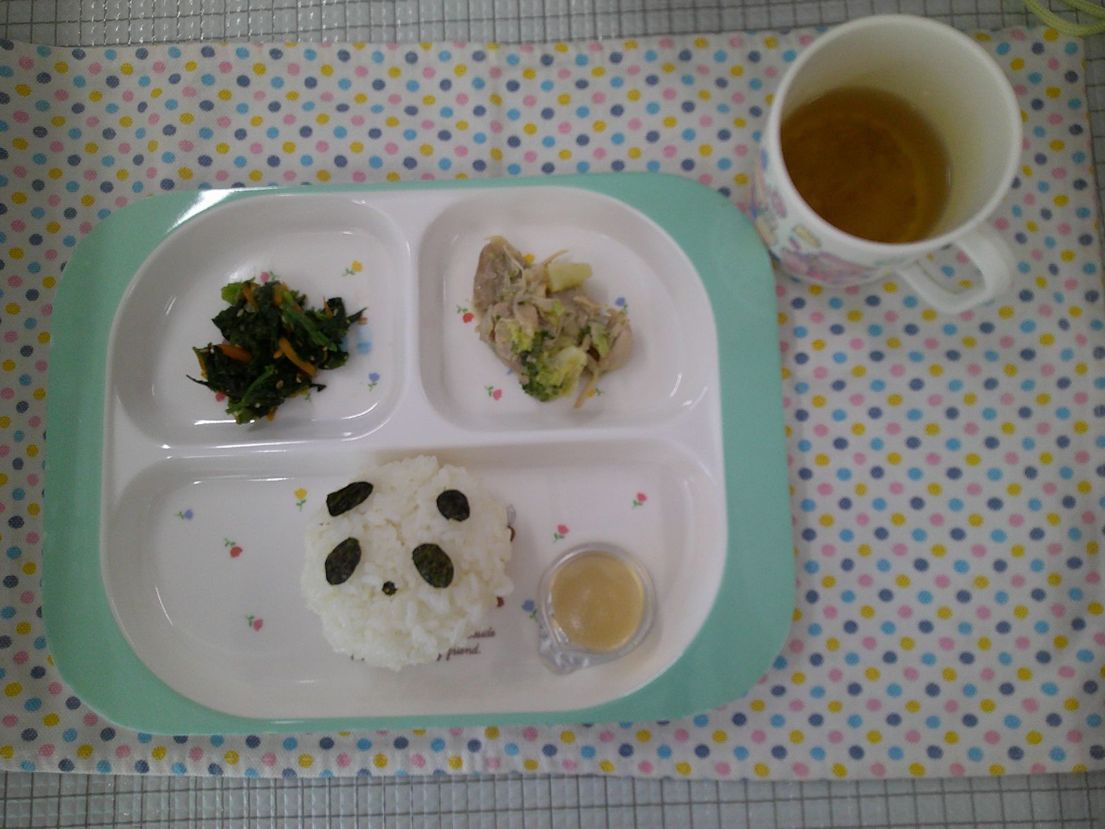 今日のお給食はパンダさんの形をしたご飯です🐼