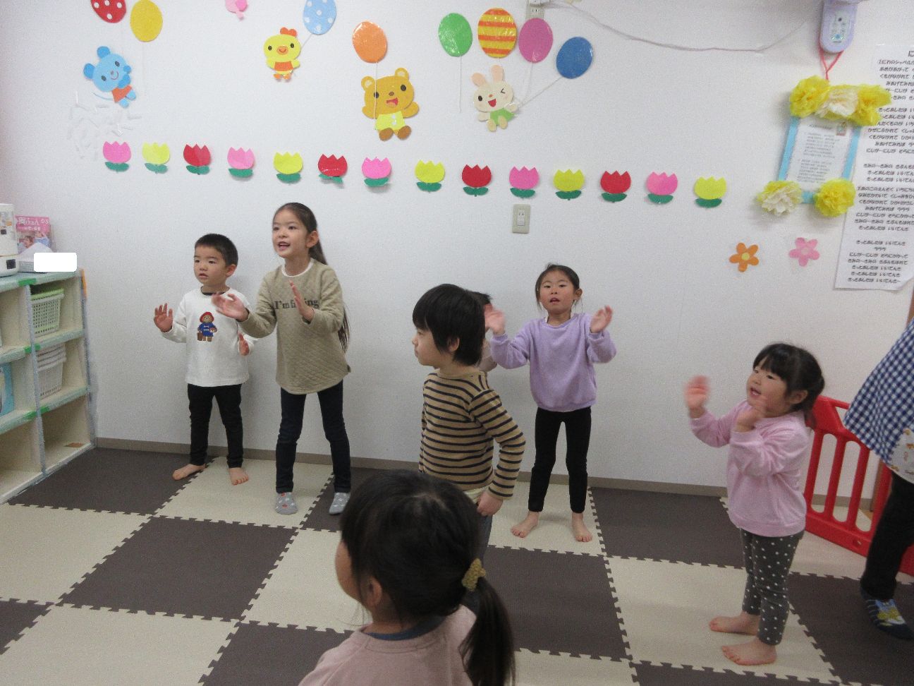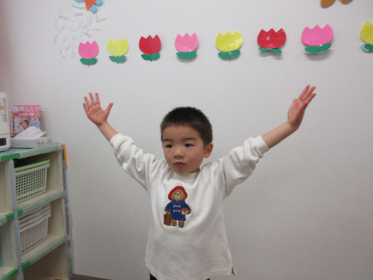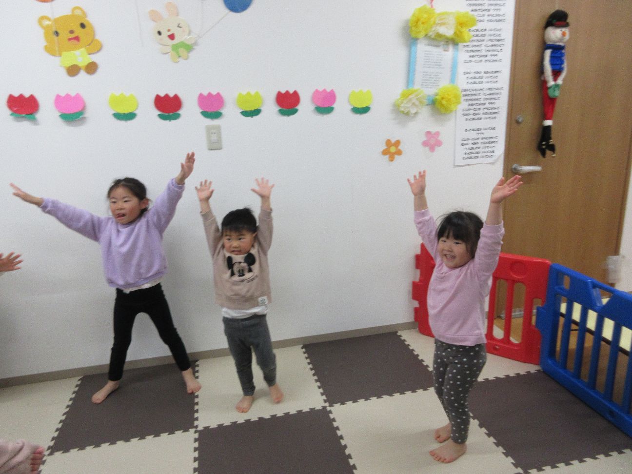 あいにくの雨だったのでお部屋でどんぐりマンを踊ったり、ラジオ体操やからだダンダン体操などたくさん身体を動かしました(*^▽^*)