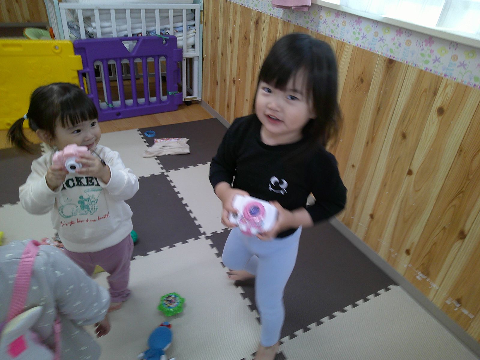 「せんせいと一緒~!」とカメラを手にするお友だち📷