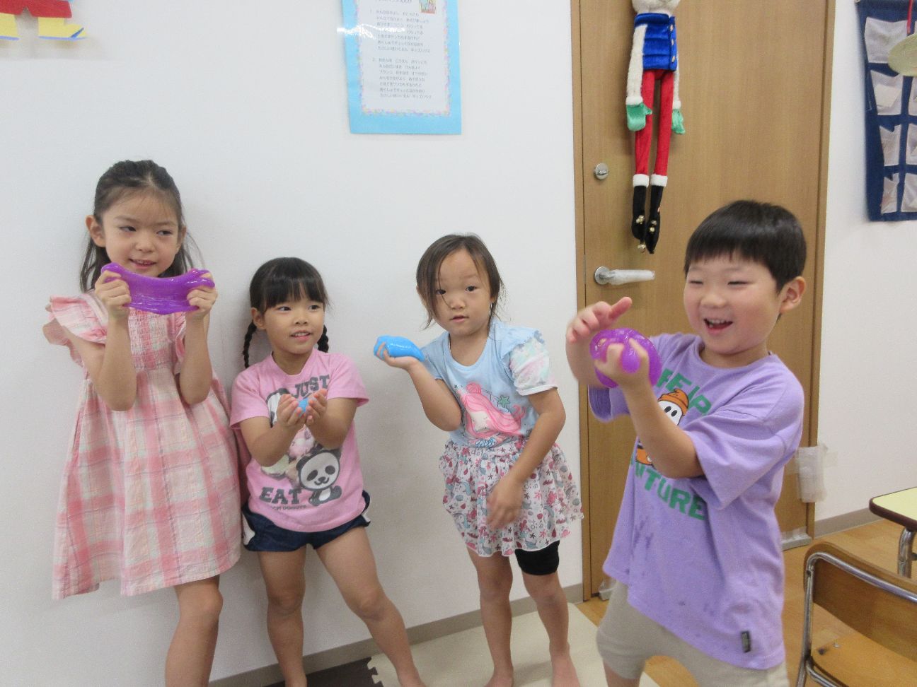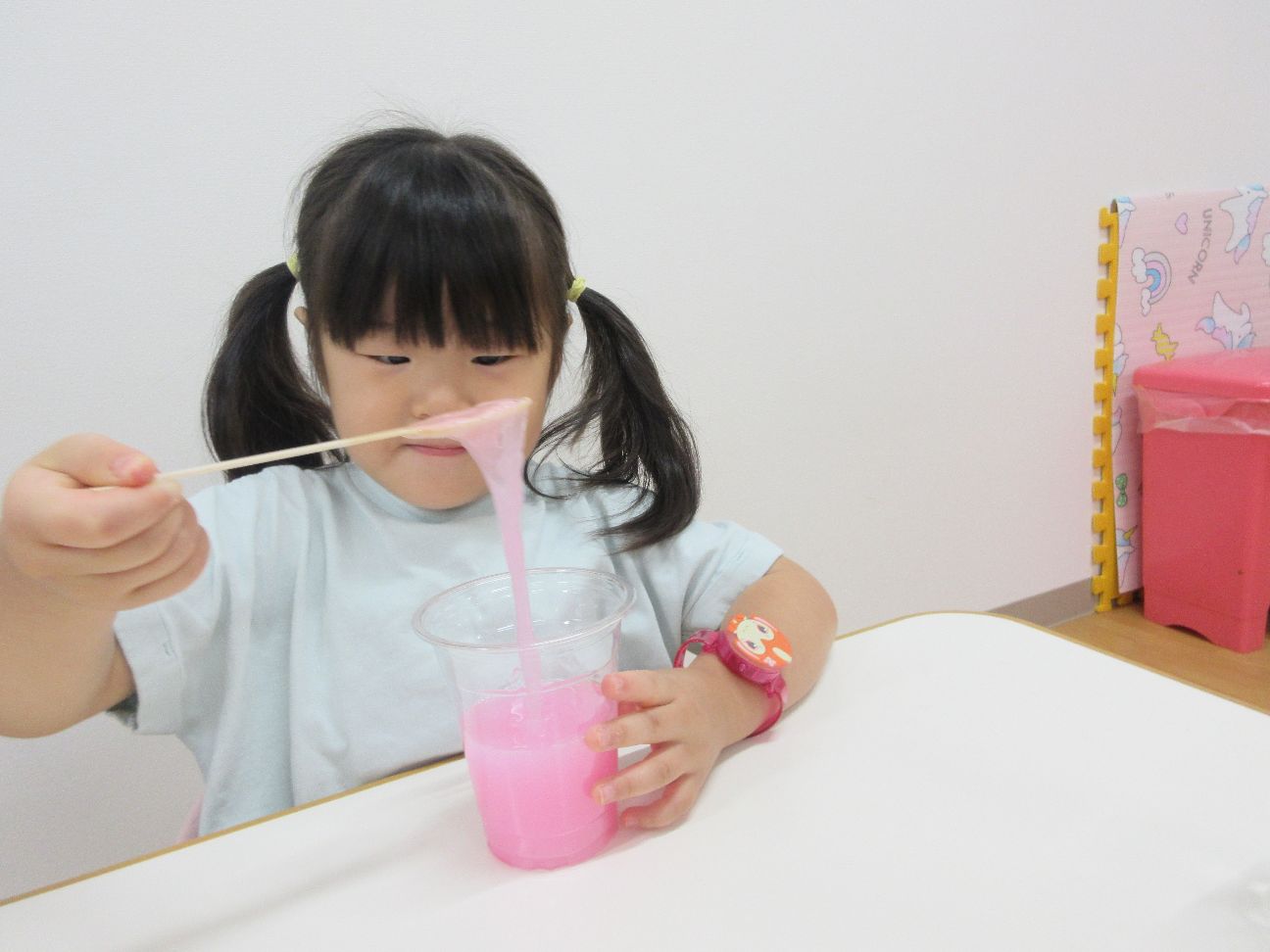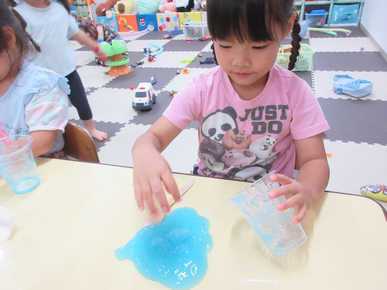 今日は水遊びの後はスライムを作ってみました~