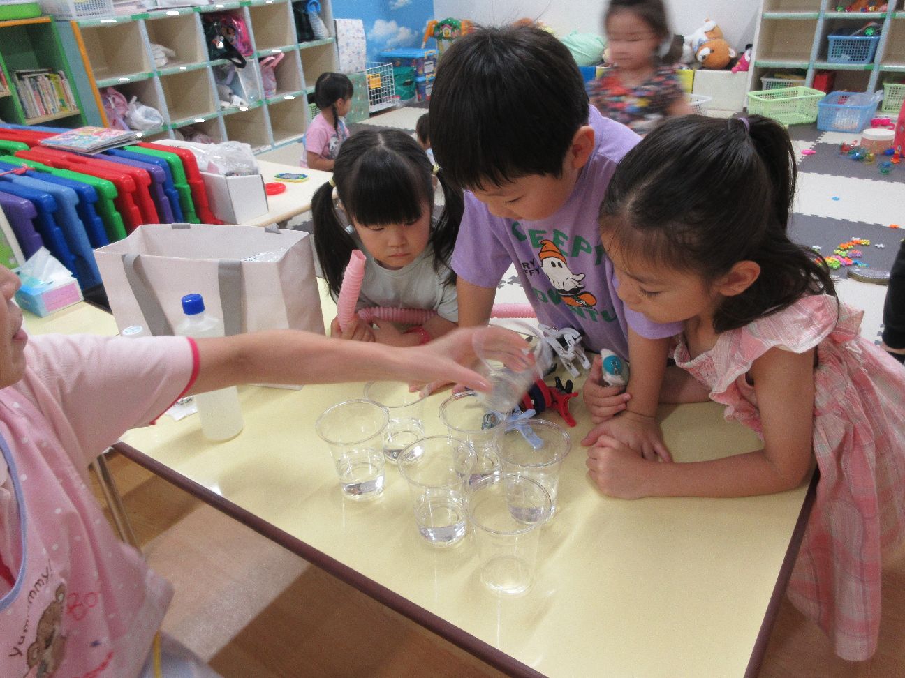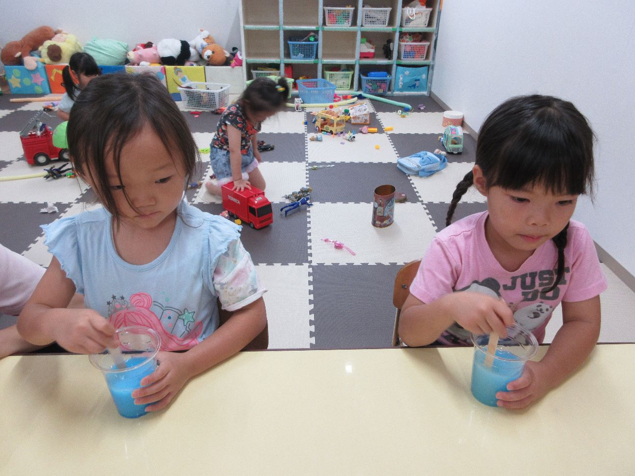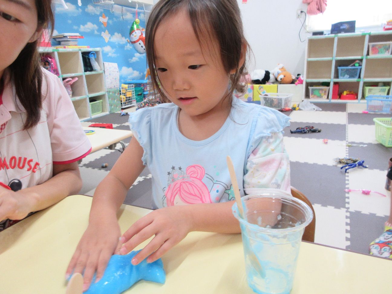 今日は水遊びの後はスライムを作ってみました~