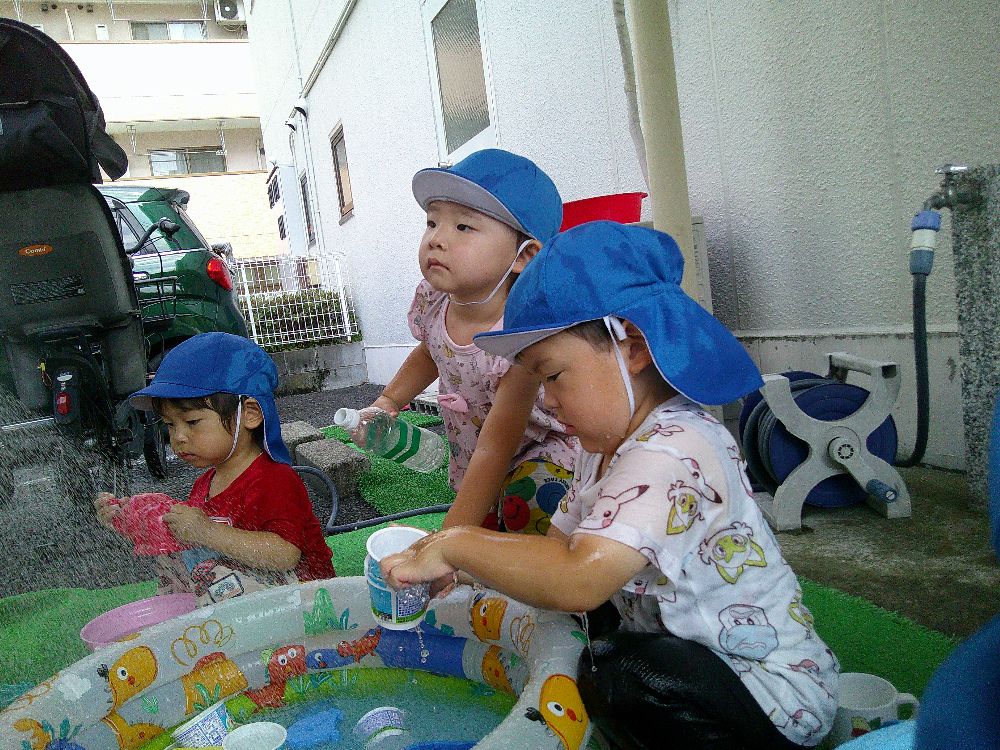 今日も朝早くから水遊びをしました♪