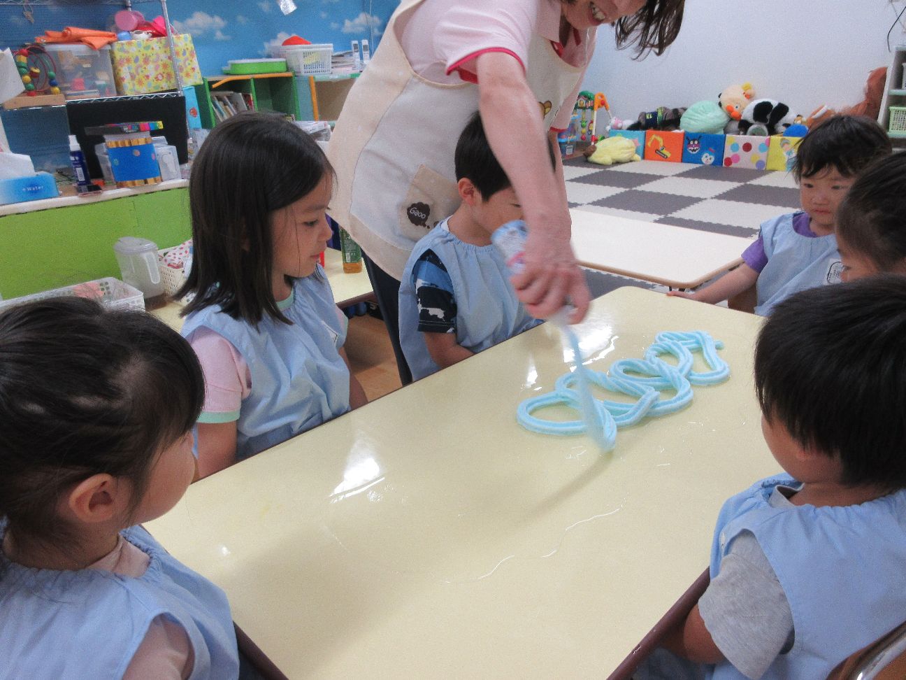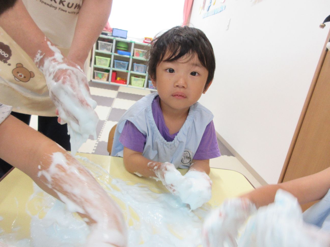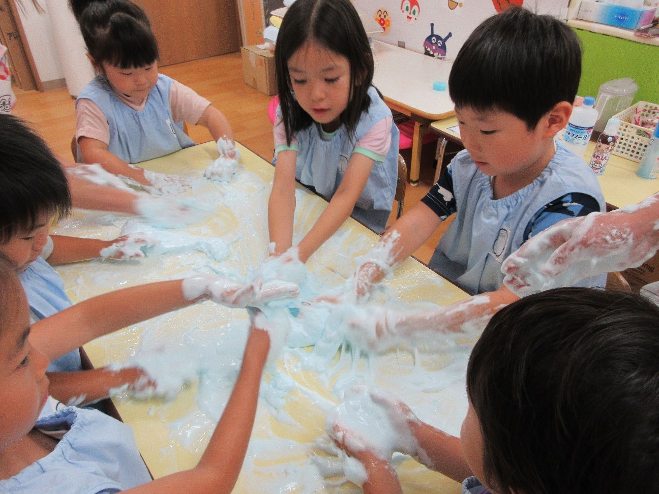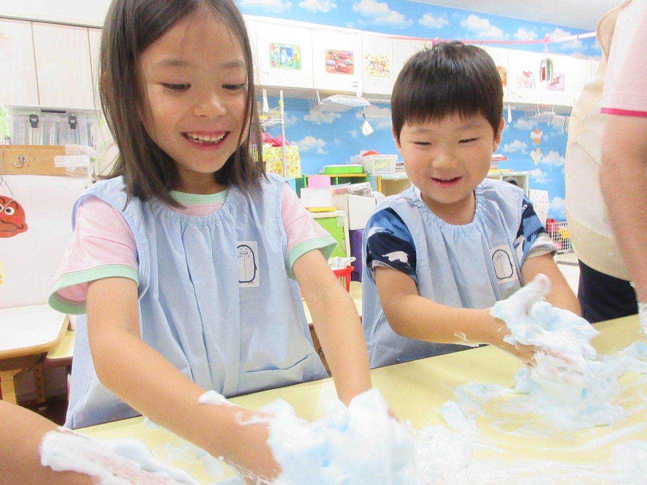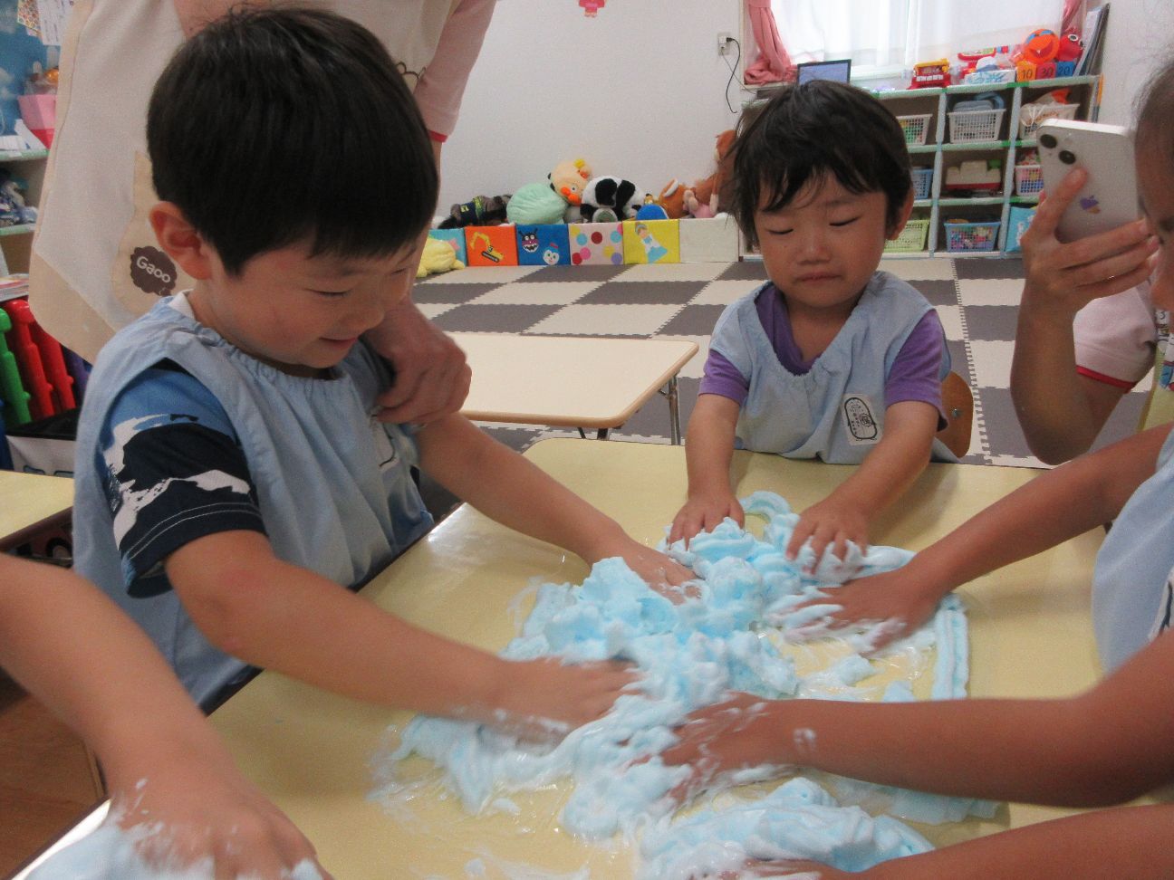 「フワフワ、モチモチ、パチパチ」の面白い感触のスライムを作りましたよ( *´艸`)