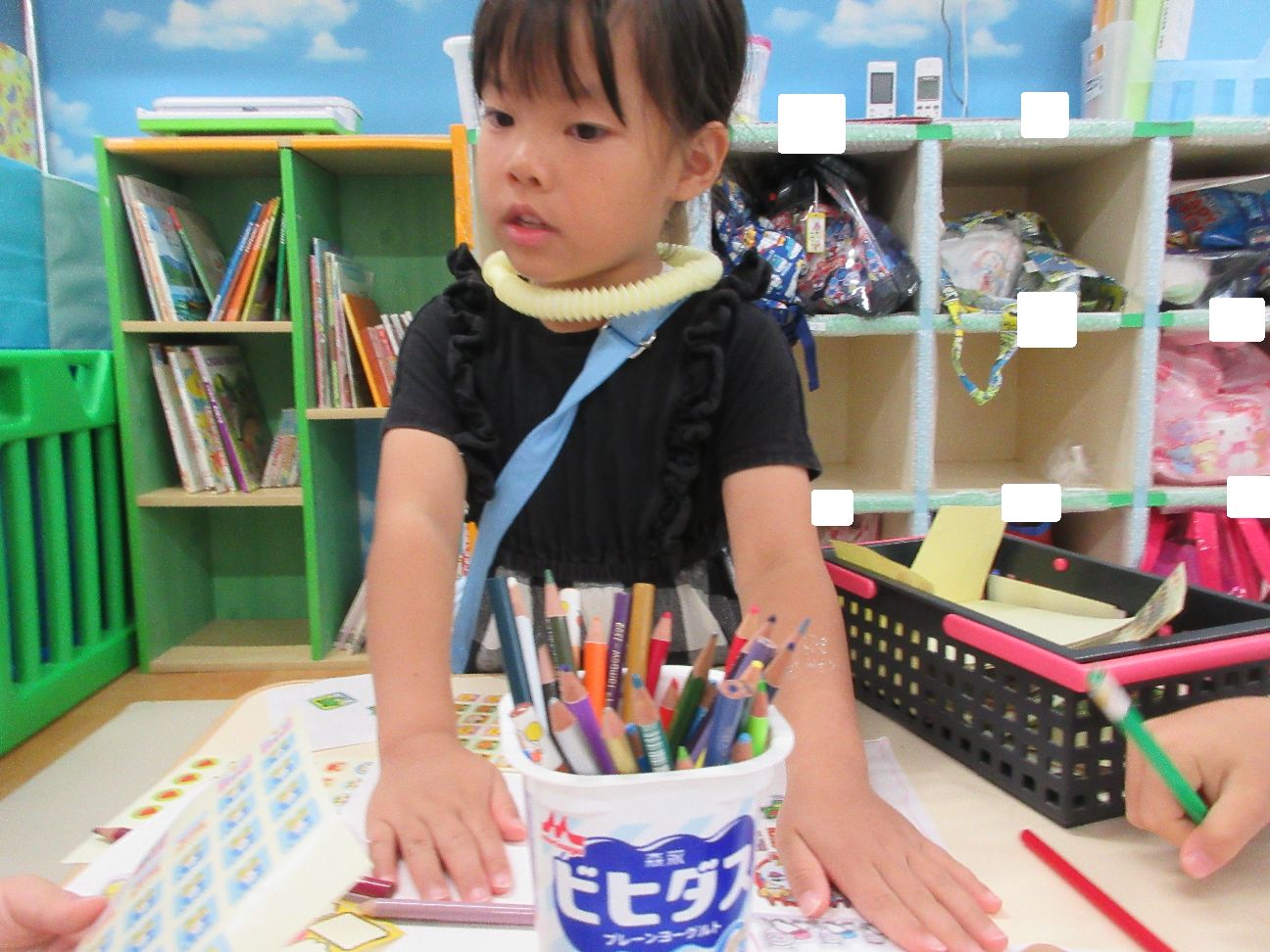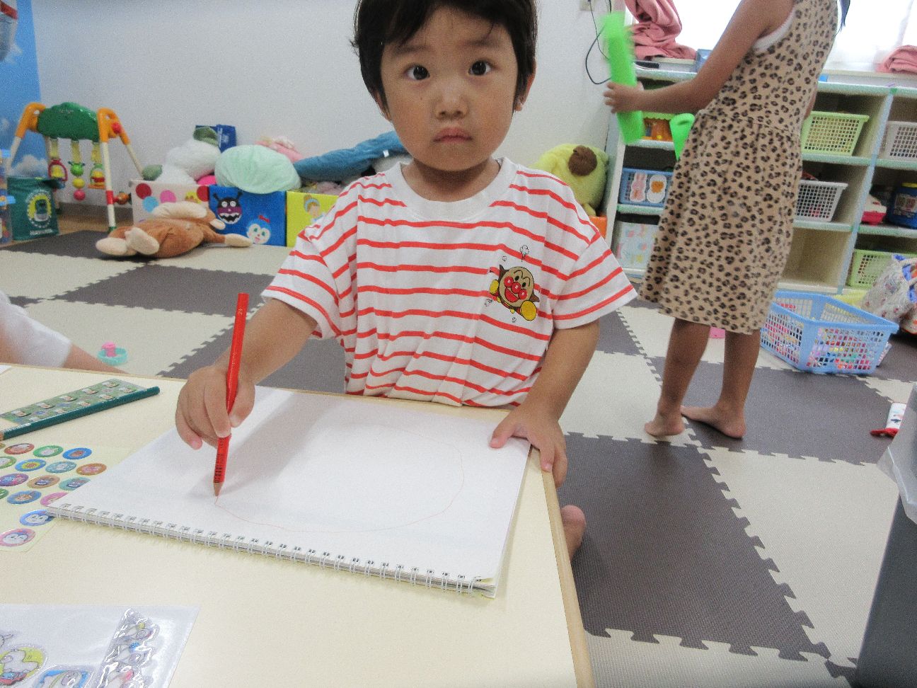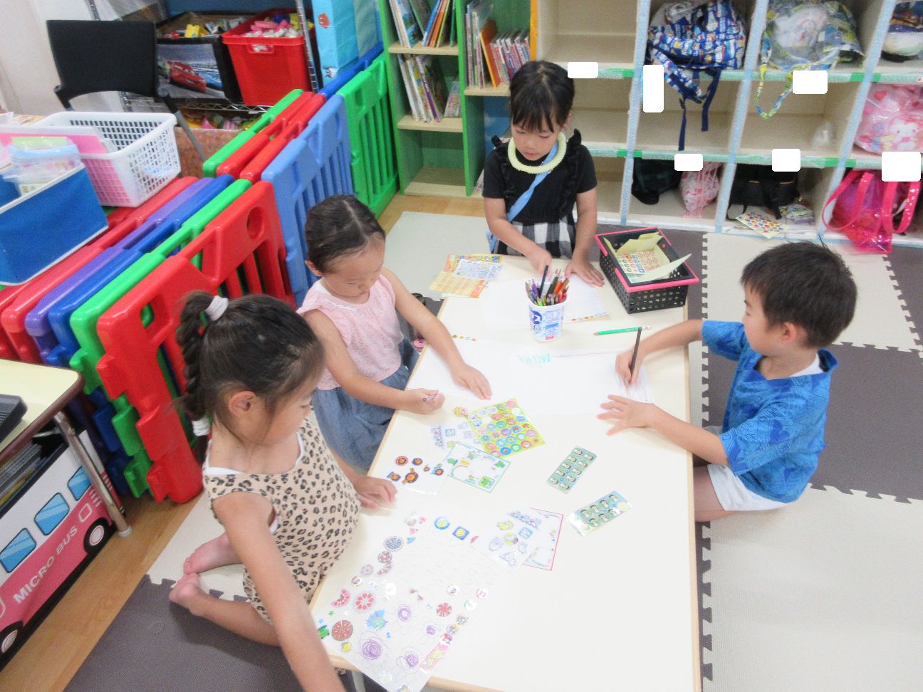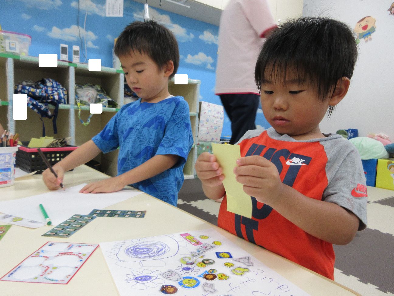 お部屋でまたまたシール貼りやお絵描きをしました!