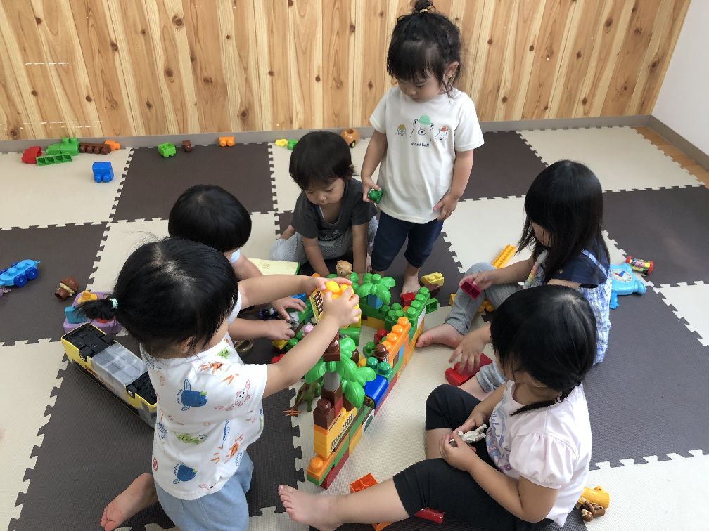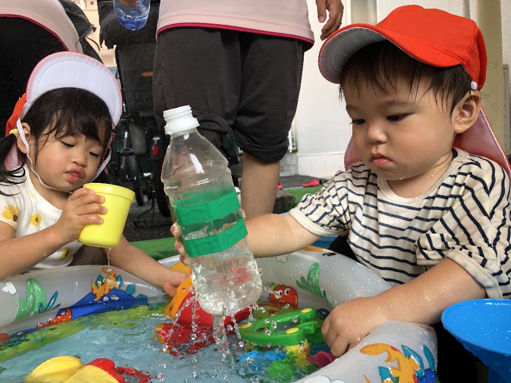 コップやペットボトルを使って楽しく遊んでいますよ。