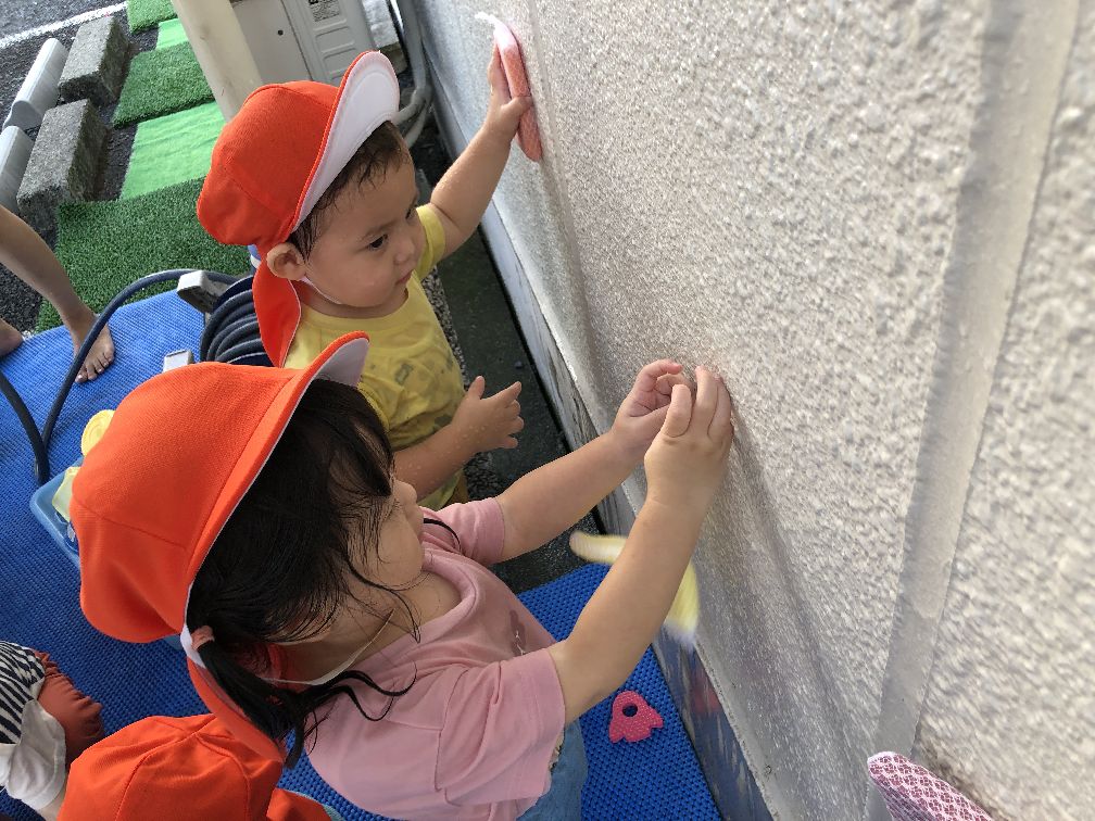 うさぎ組さんもお掃除遊びがブームのようで、保育園の壁をピカピカにしてくれました✨