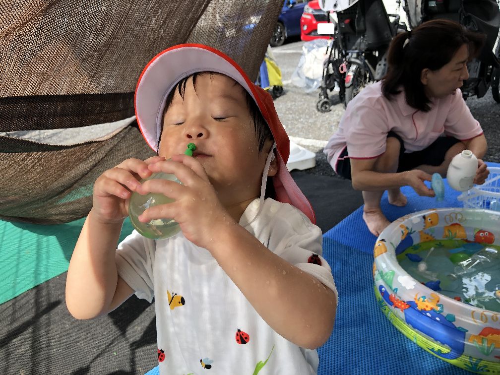 水風船をジュースのコップに見立てて飲む真似っこ🍹
