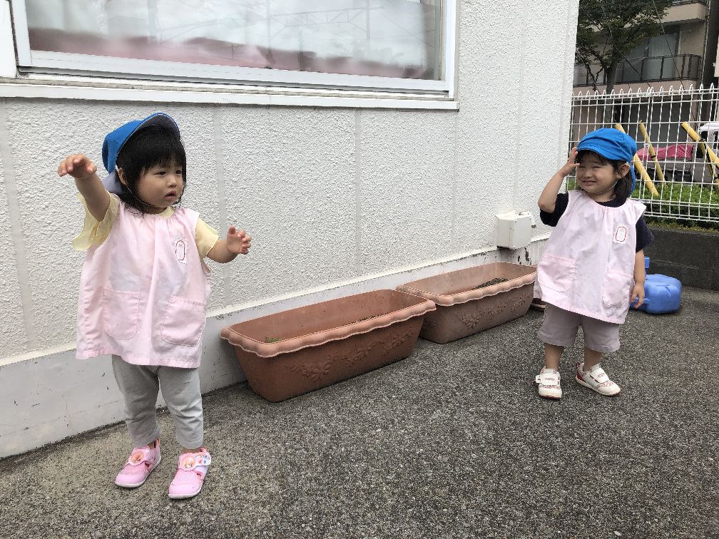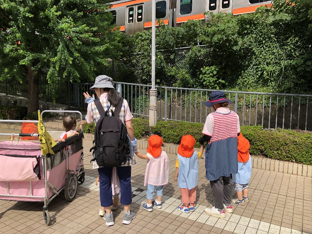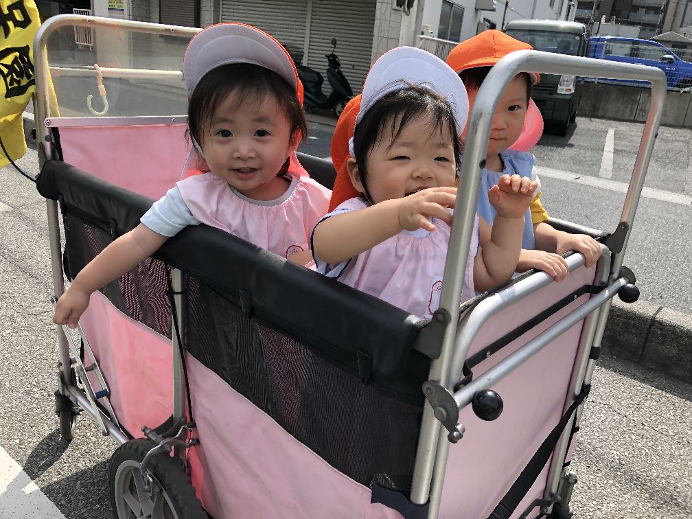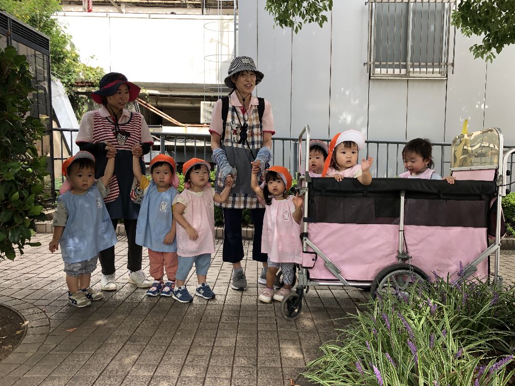 今日は水遊び見学のお友だちが多かったので、うさぎ組さんは園周辺のお散歩に行きました!