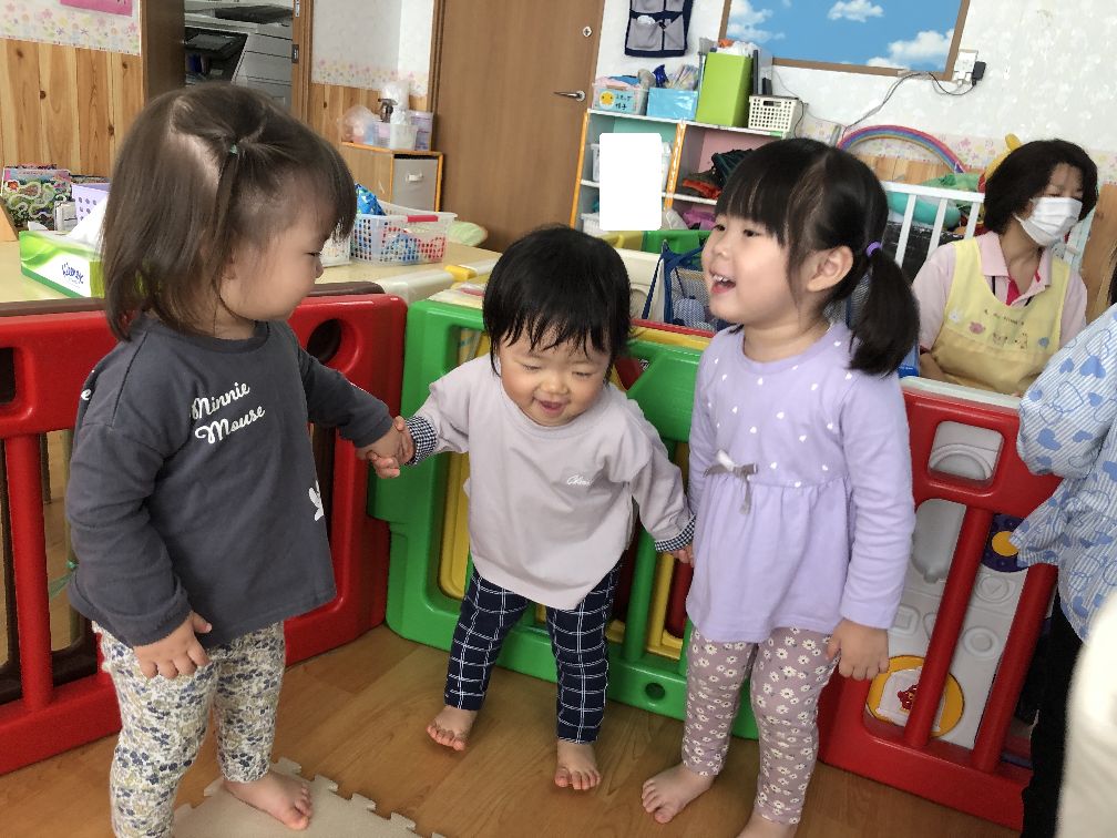 朝の会では仲良くお手てを繋ぎながら歌っていますよ🎵