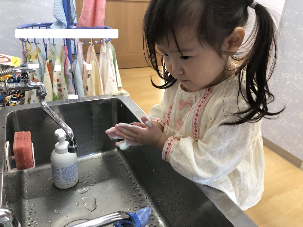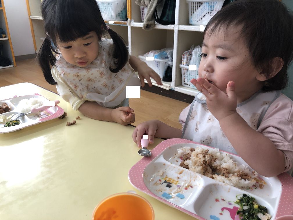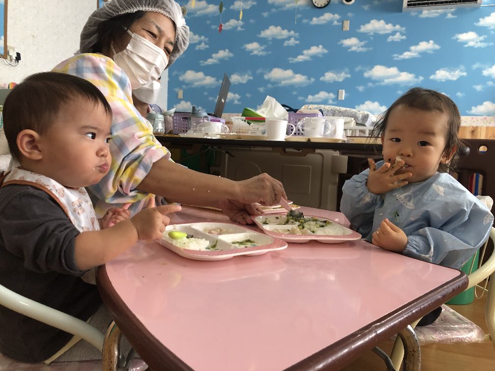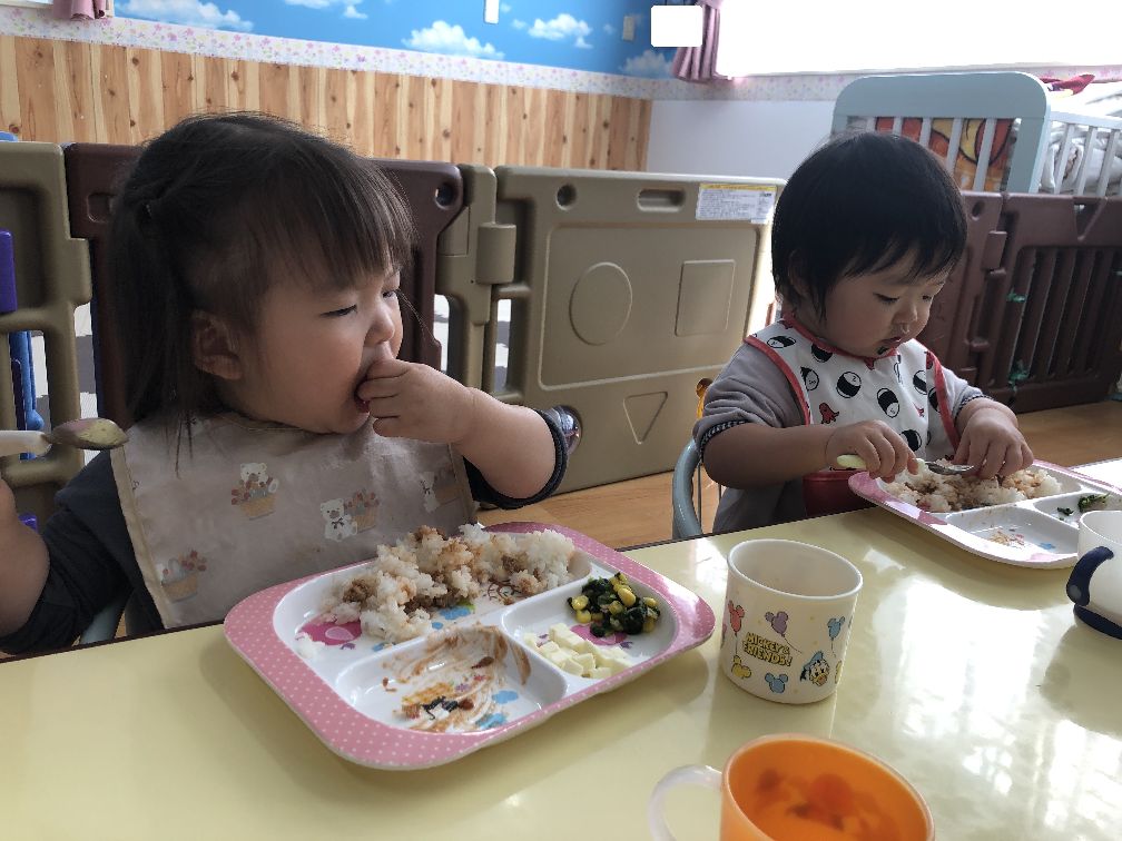 保育園から帰って手を洗っておいしいお給食の時間😋