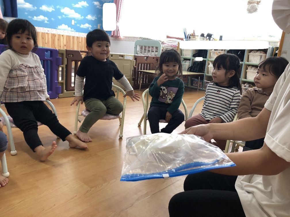 不思議な感触に興味津々なお友だちがたくさん!みんなで楽しむことができました(*^-^*)