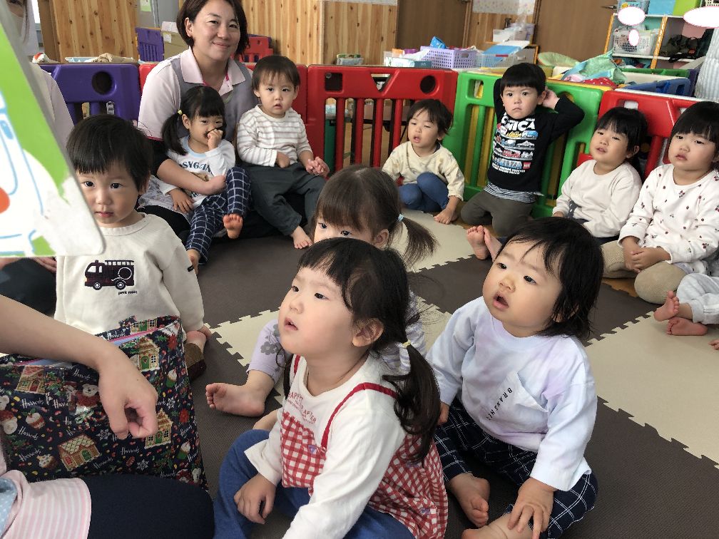 朝の会が終わり、絵本を読んでお散歩に出発です。