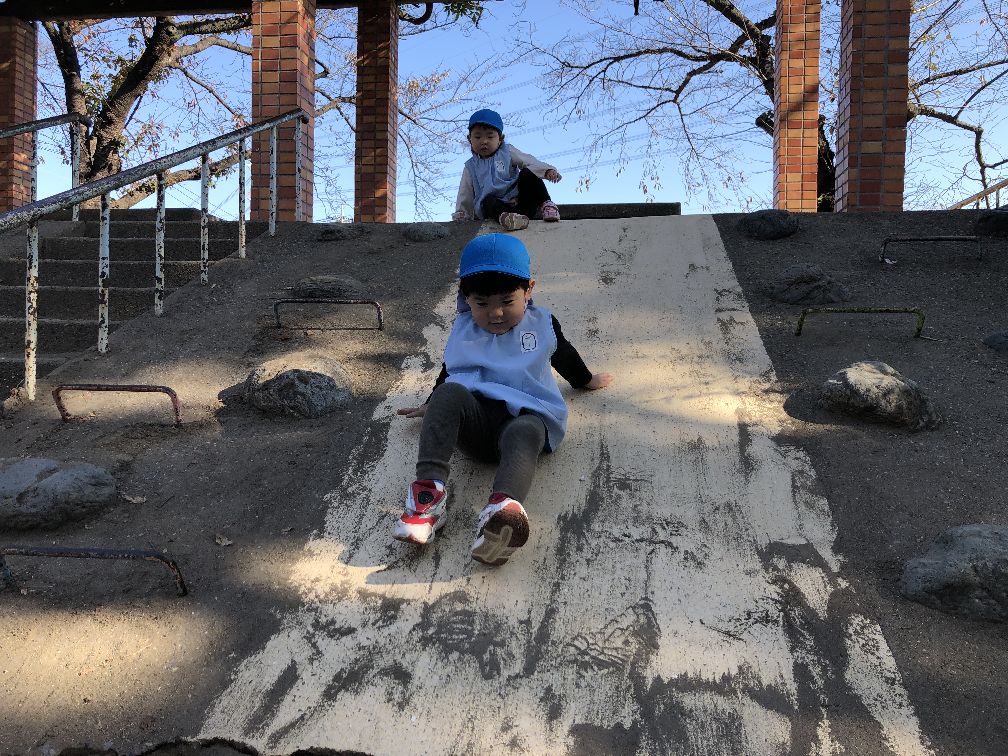 滑り台やブランコ、鉄棒など色々な遊具にも挑戦🤗