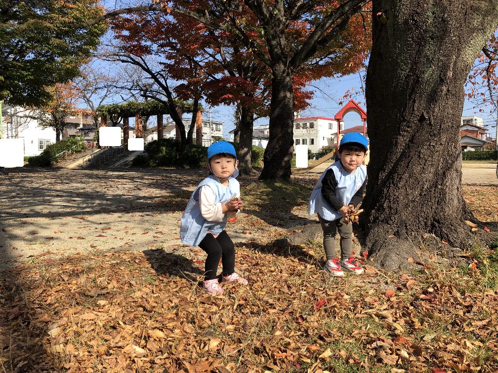 風が吹くと落ち葉がたくさん落ちてきて大はしゃぎ💕