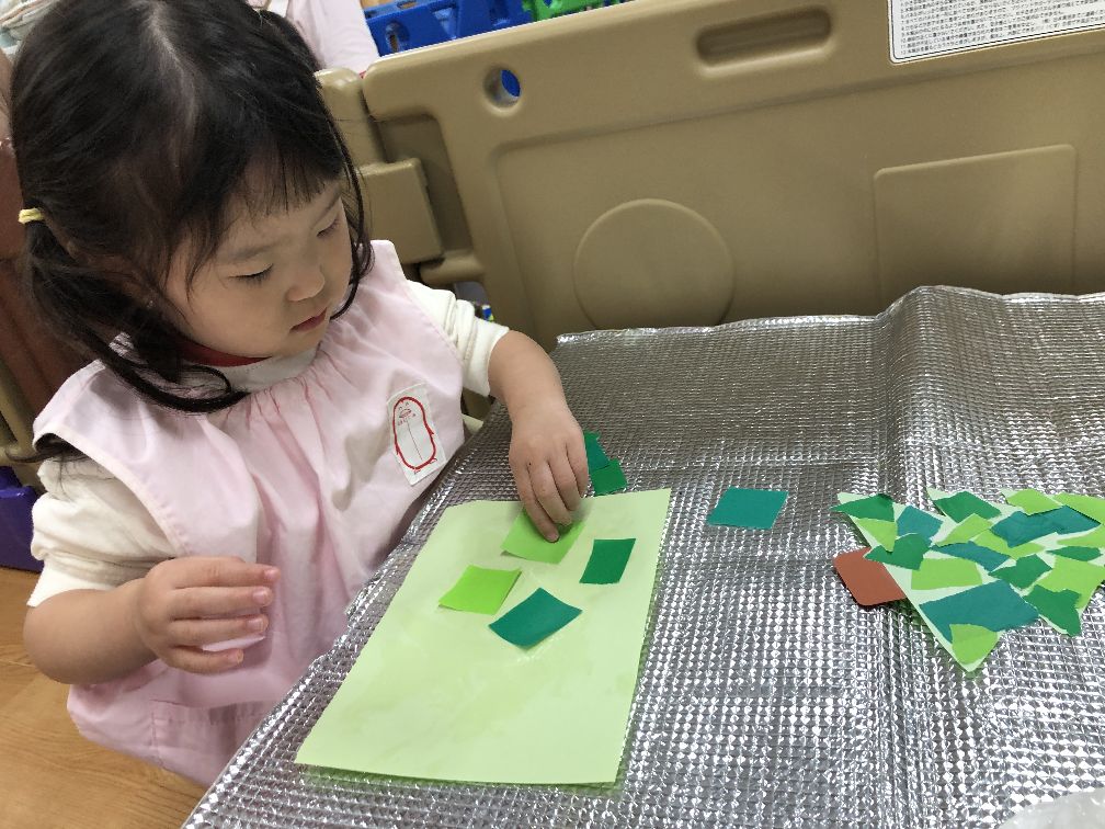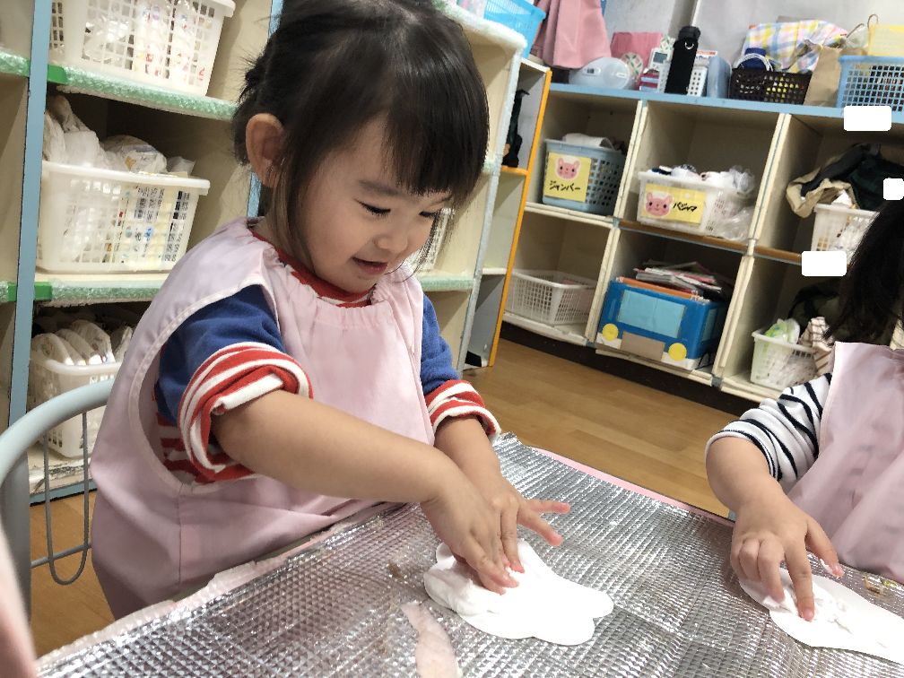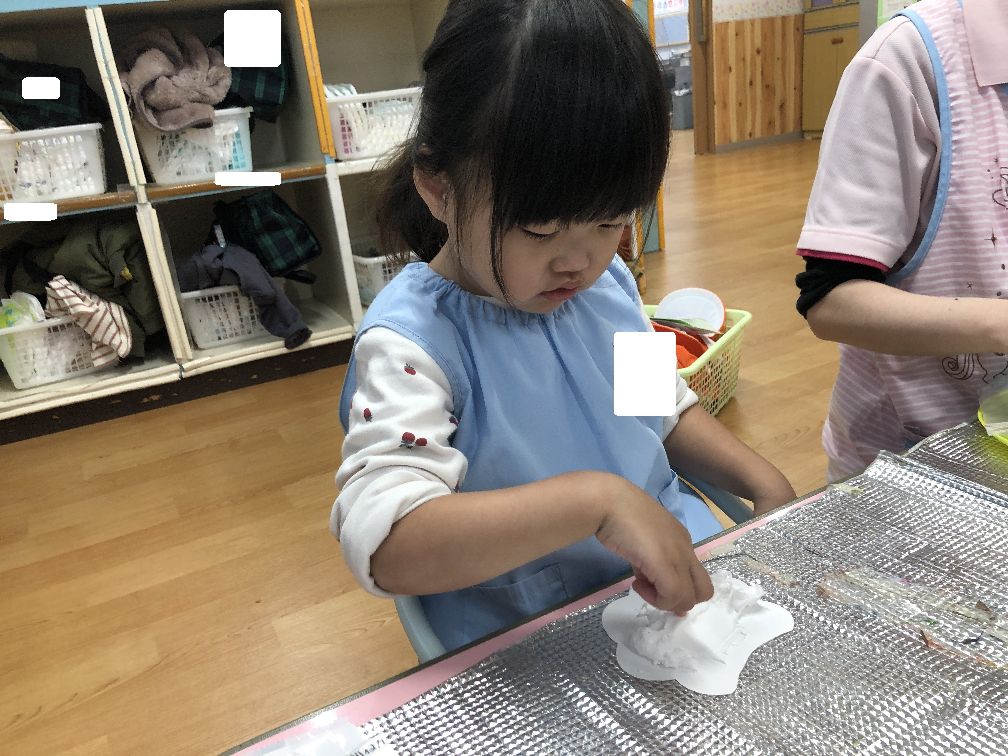 こあら組さんは紙粘土、うさぎ組さんは初めてのりを使いました♪