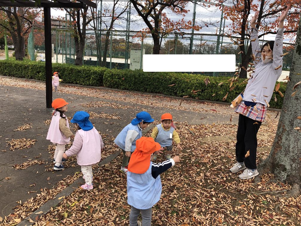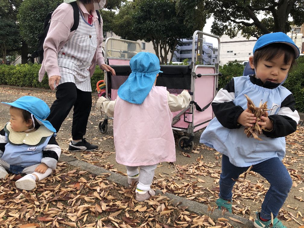 公園にはたくさんの落ち葉があり、みんな大喜び(*^▽^*)