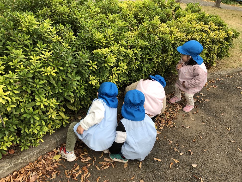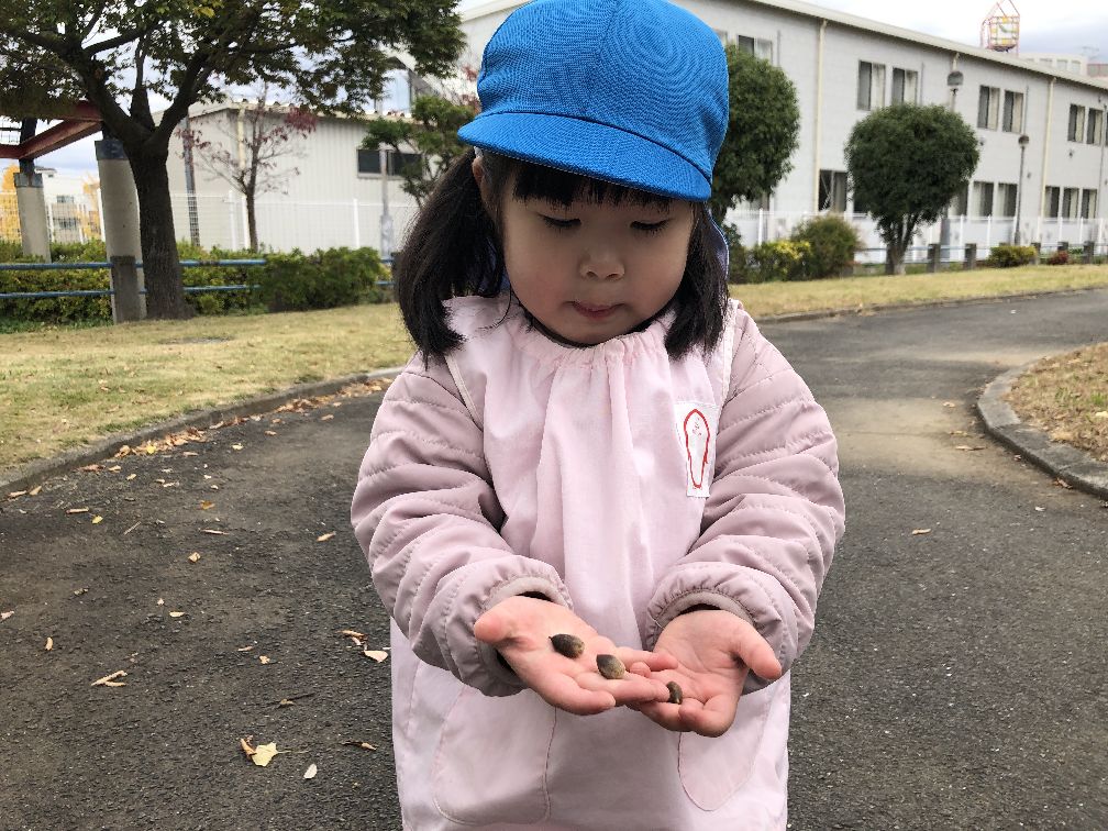こちらのお友だちは落ち葉で隠れていた赤ちゃんどんぐりを見つけていましたよ☆