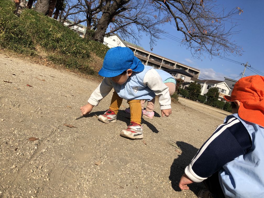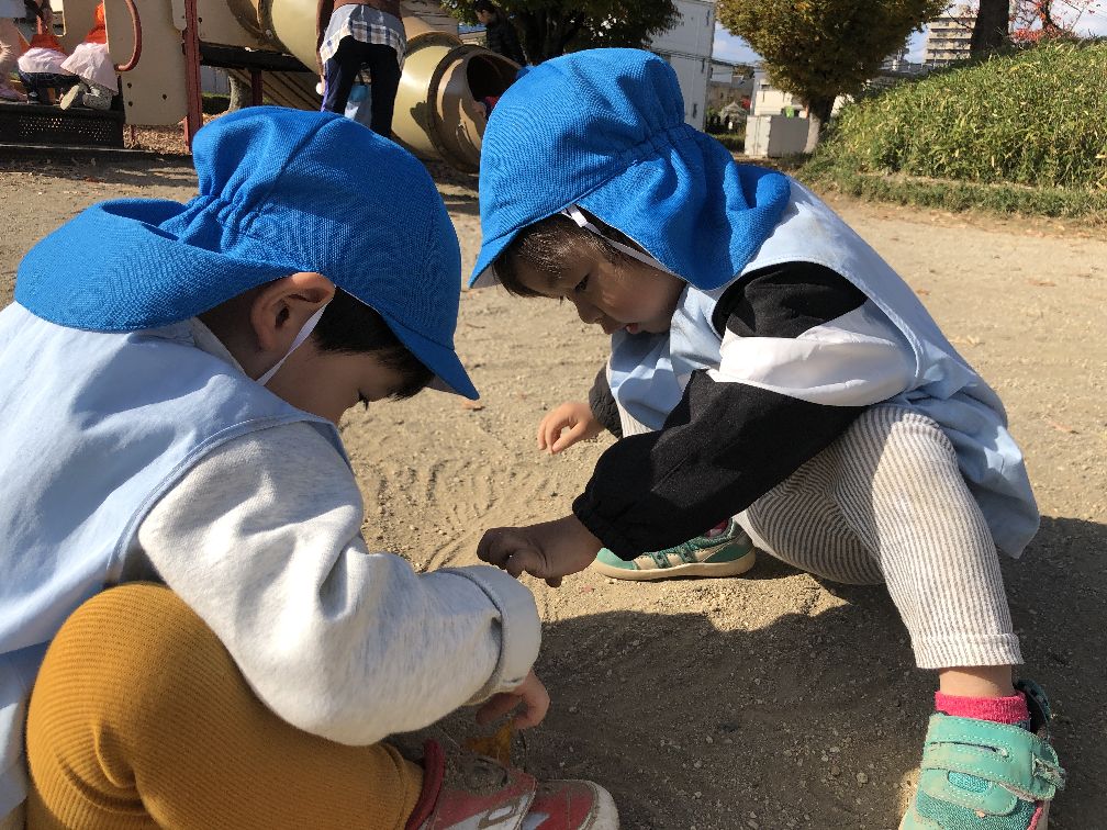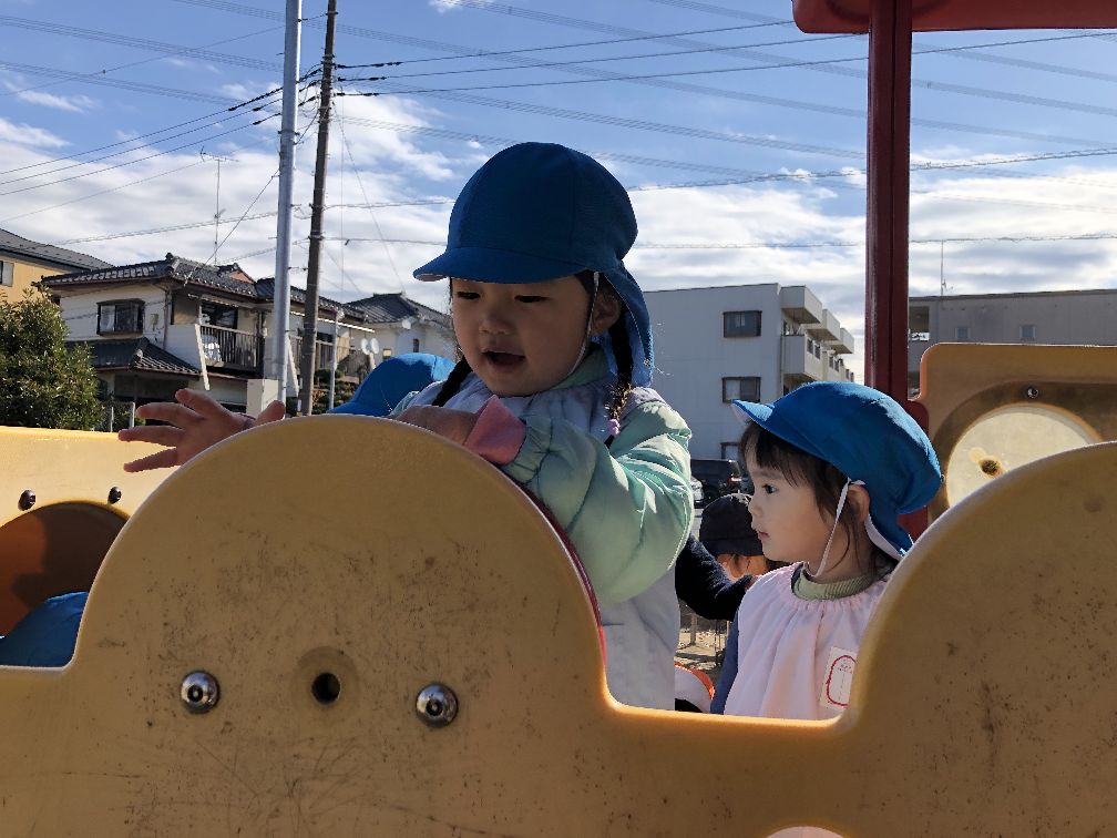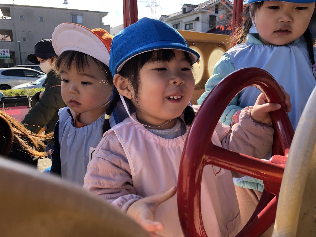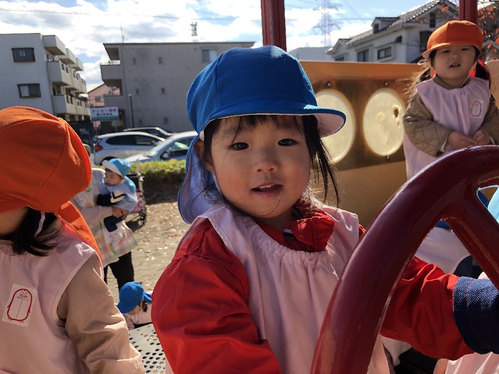ハンドルで運転手さんごっこや、お砂や落ち葉でも遊びました😀
