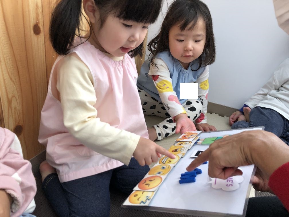 前回に引き続き、形、色と組み合わせて「ピンクTriangle!」や「ブルーCircle」等のゲームをしました🥰