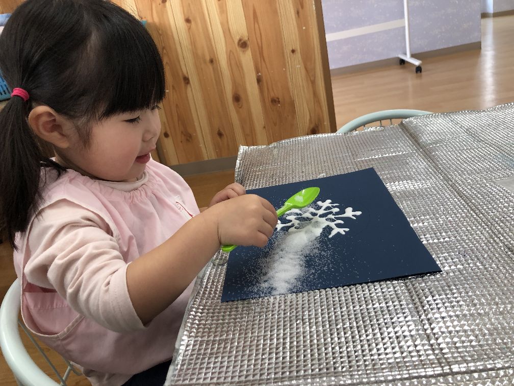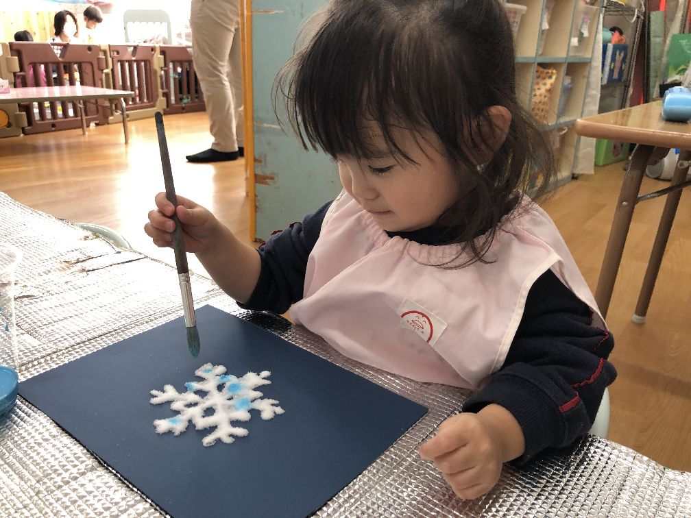 こあら組さんは冬の製作を先生と一緒に取り組み、