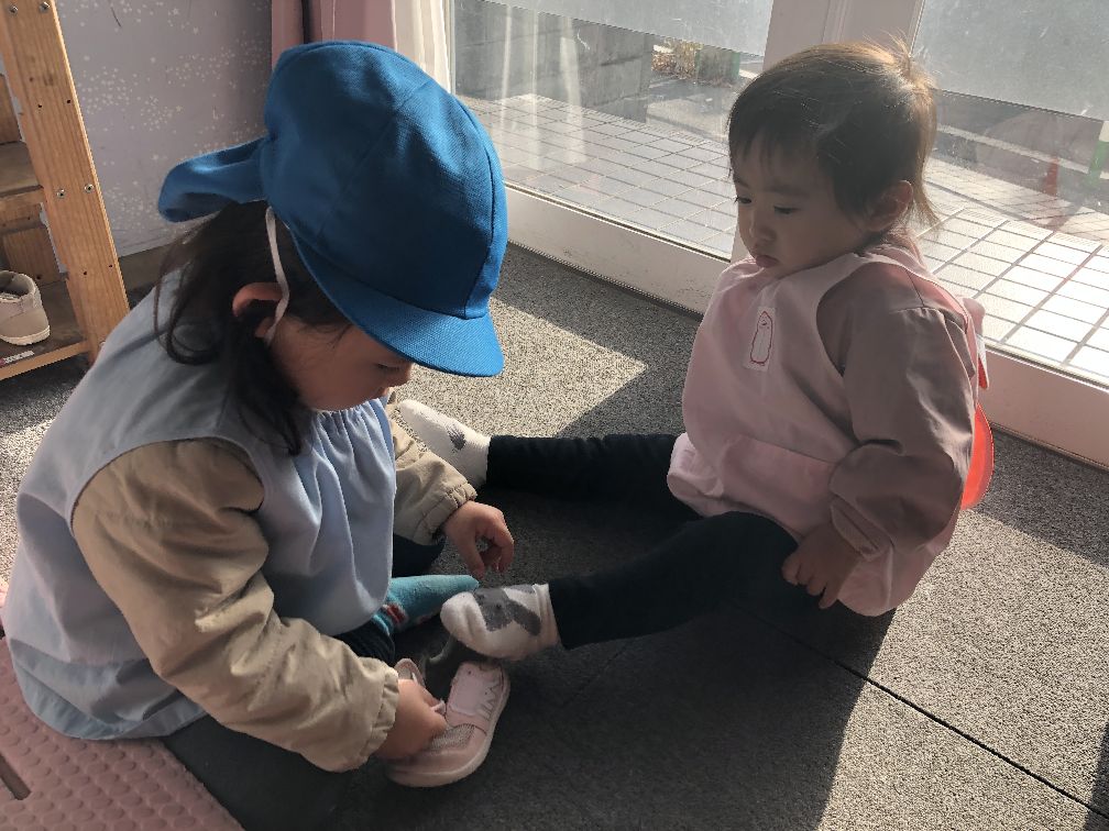 靴を履くお手伝いをしてくれたこあら組さんです。