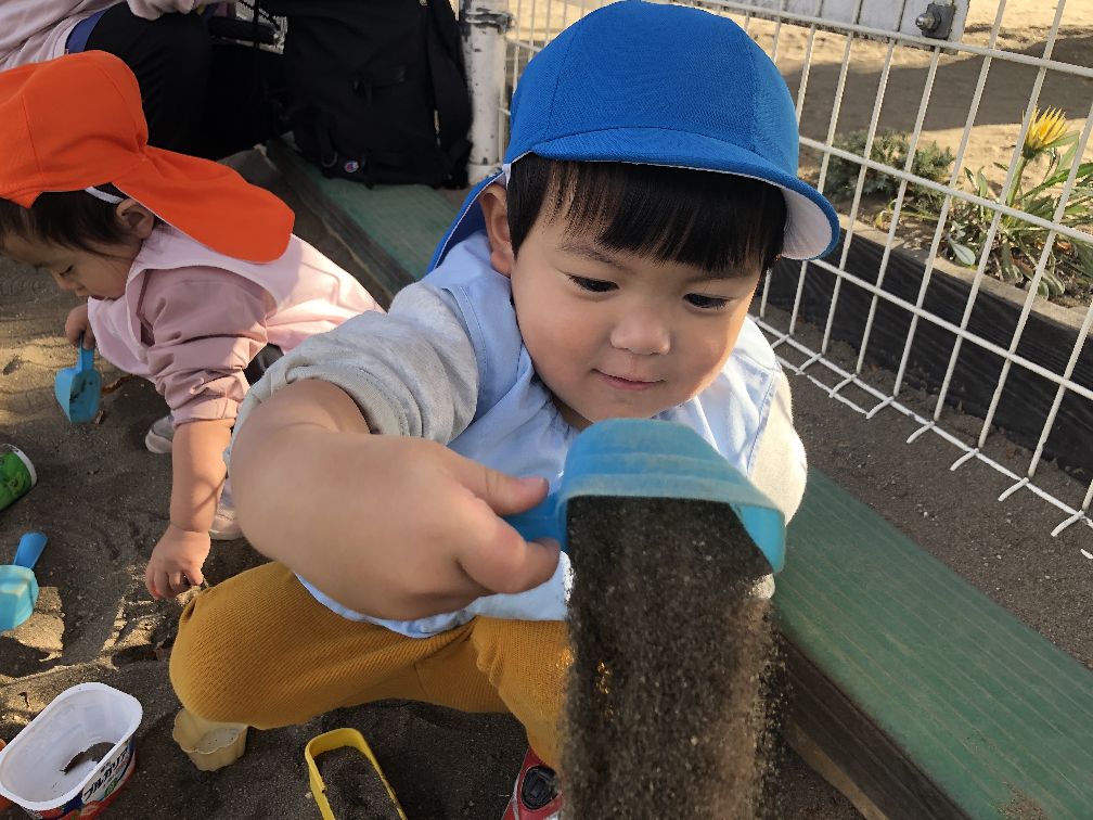 天気が良く、榎戸公園へ行きました。公園では砂場遊びをしました。