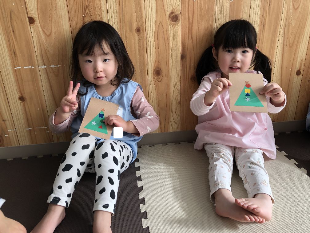 そして、クリスマスツリー🎄のがはってあるカードに、○△□☆を発音しながら貼り付けて、