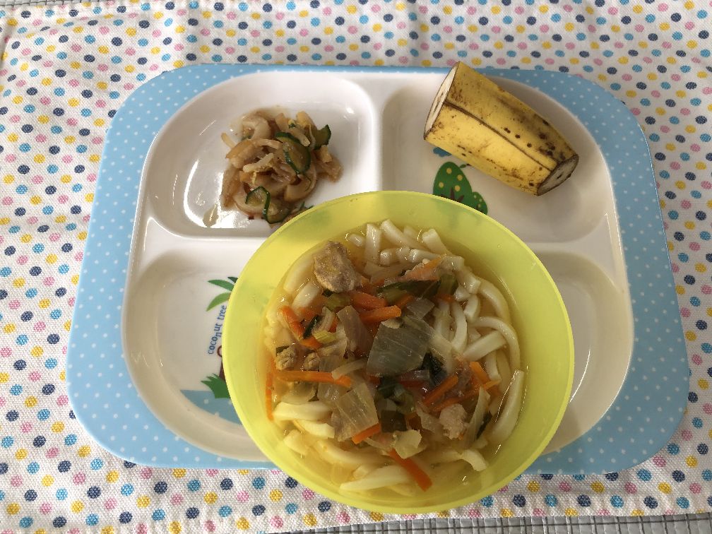今日のメニューはうどん、ばななと食べやすくおかわりもすぐになくなってしまうくらい人気でした。