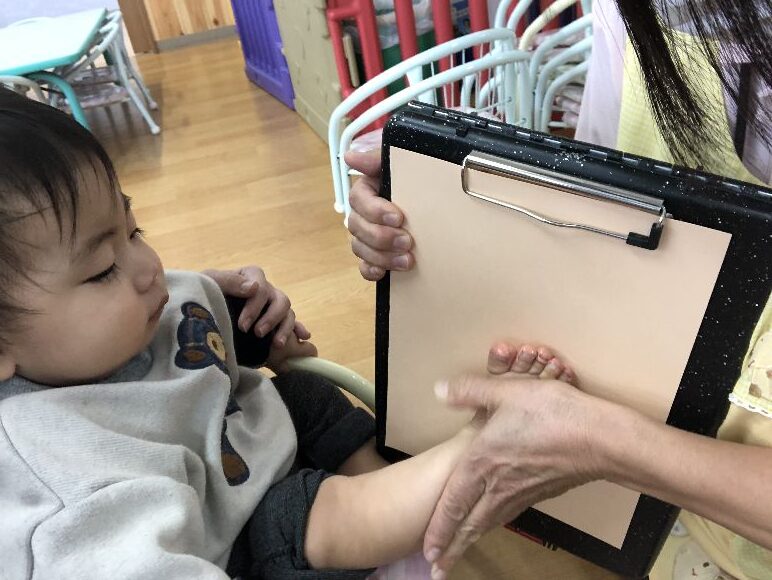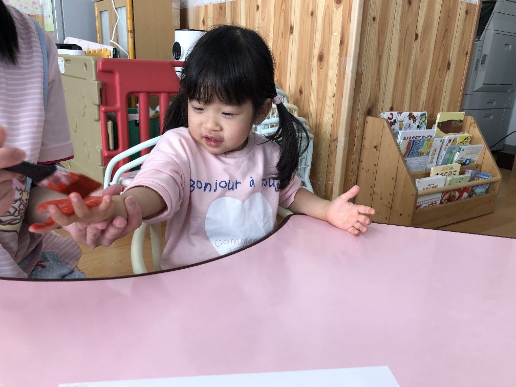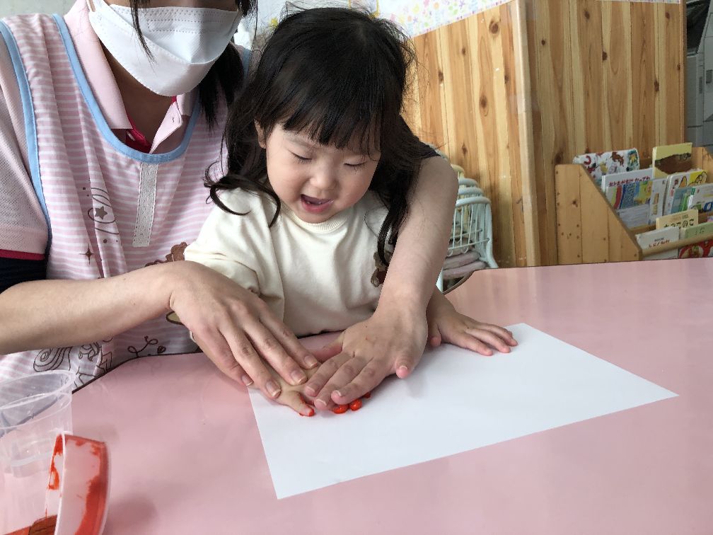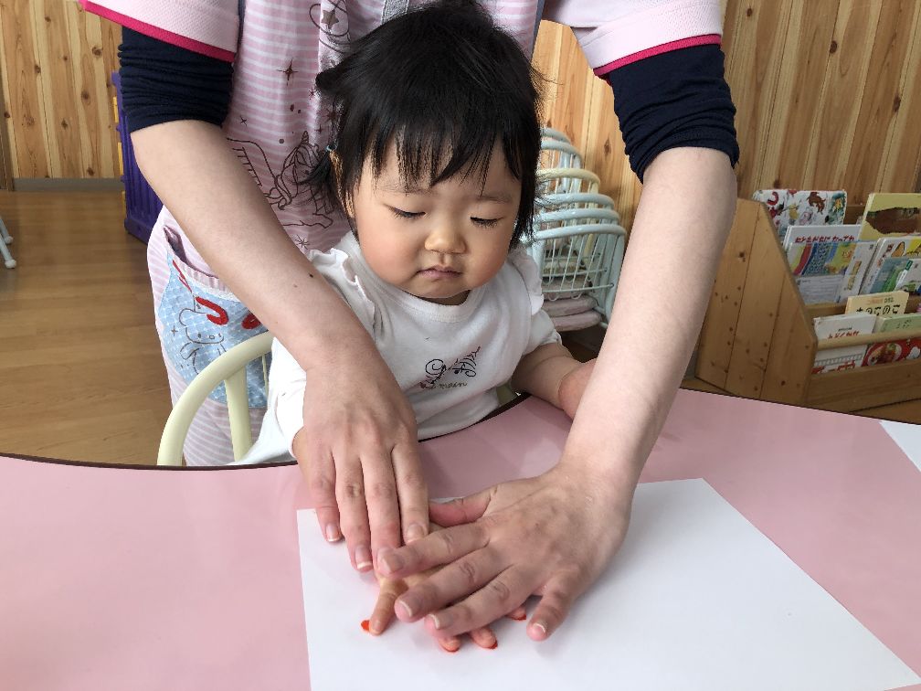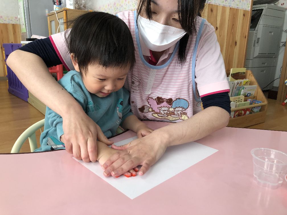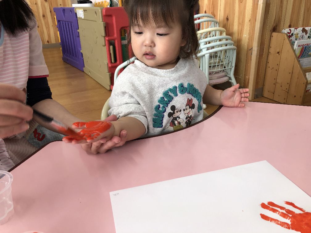 今日はこあら組さんは英語教室だったので、ひよこ組さんとうさぎ組さんは。手型と足型のお製作をしましたよ🥰