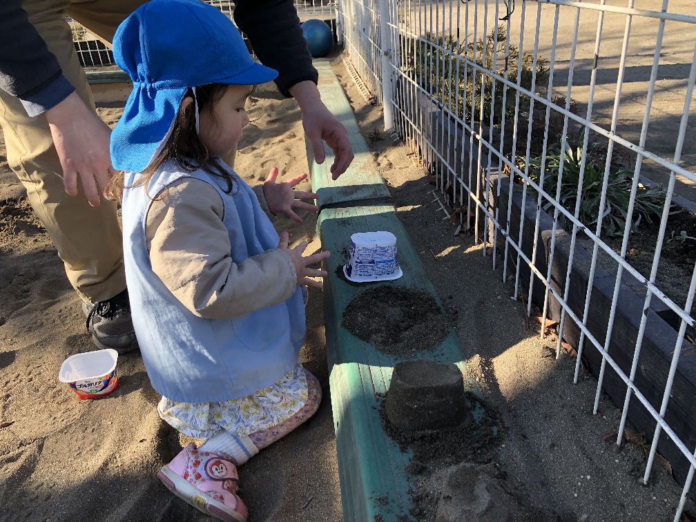 残念ながら写真に写っていませんが、最後は大きなお山をみんなでペタペタと固めて大はしゃぎでした♪