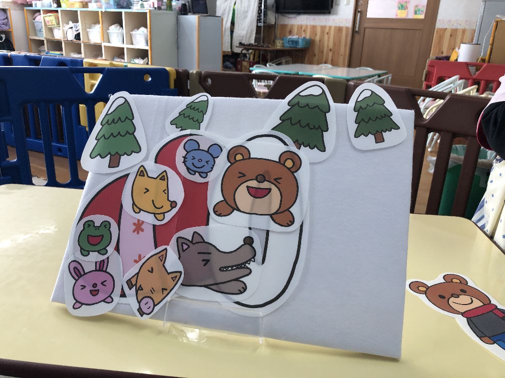 さてさて、今月の先生の出し物は『てぶくろ』のパネルシアターでした🧤