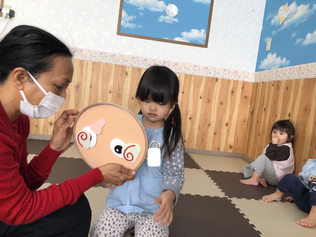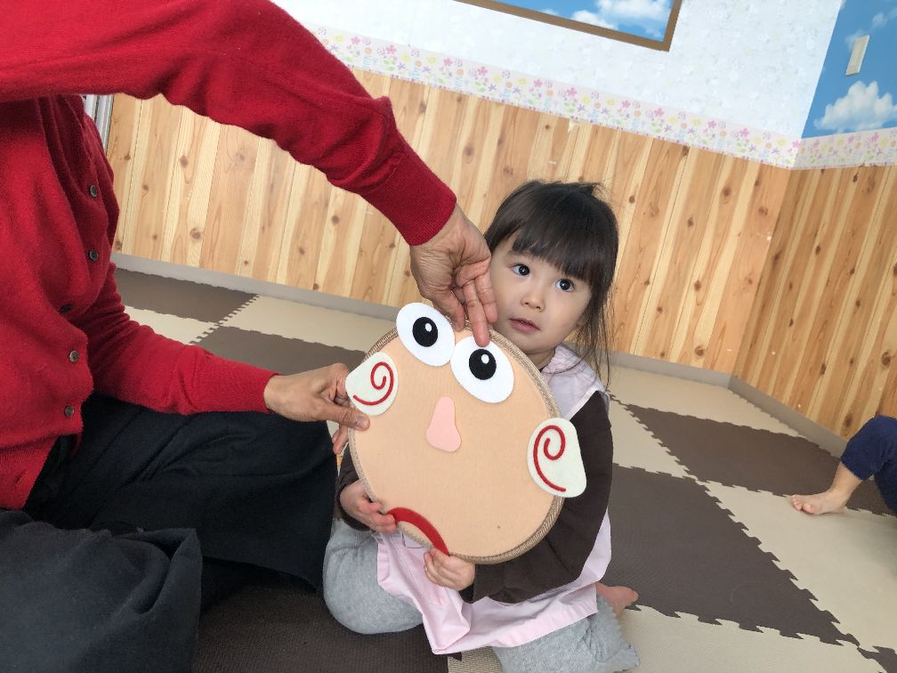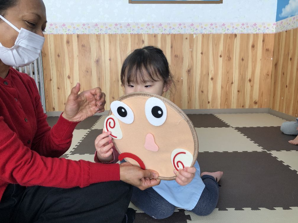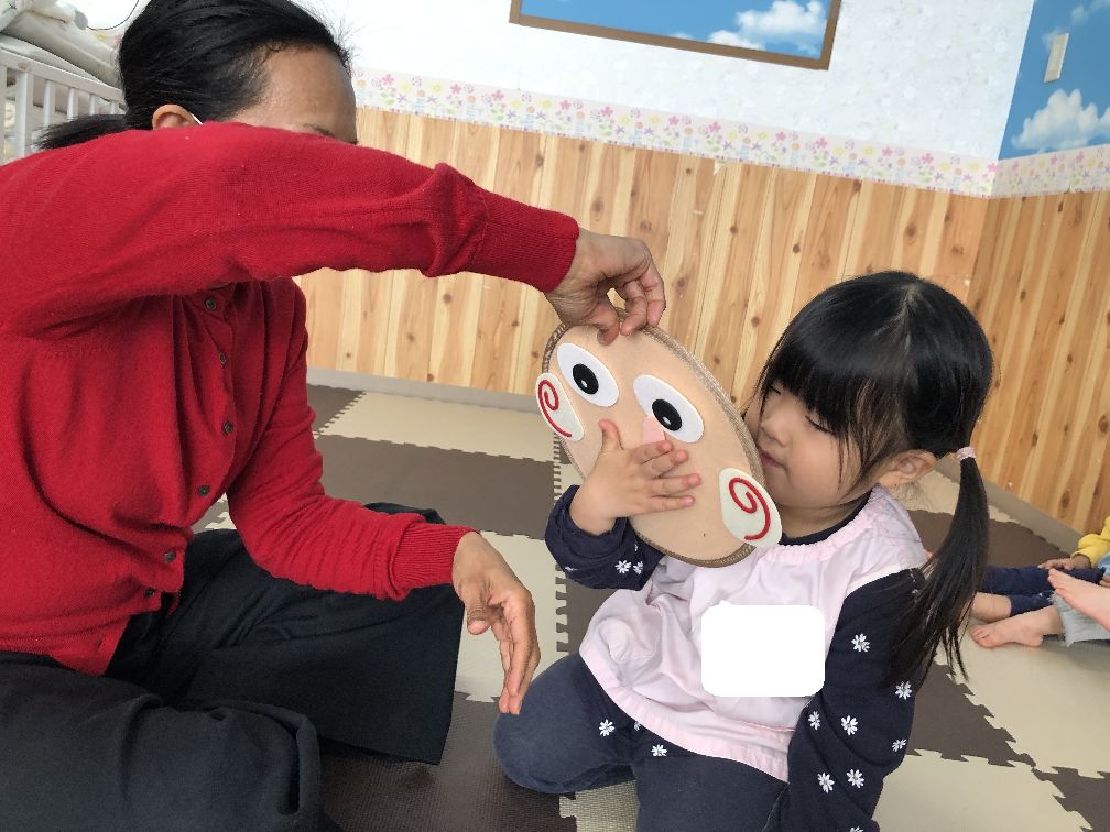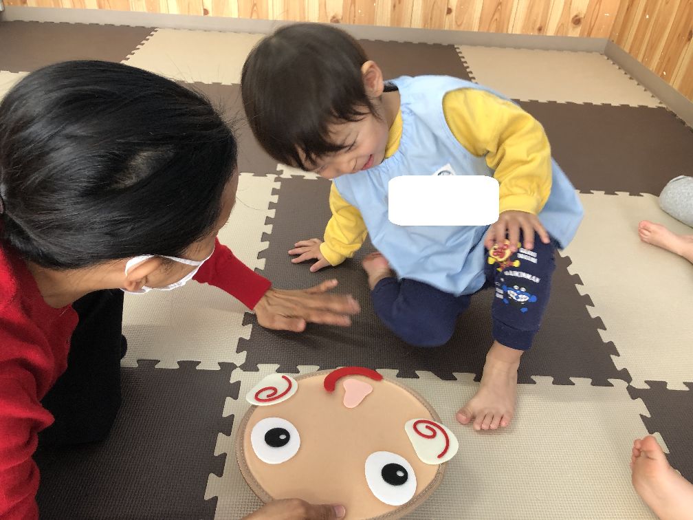 後ろから目や鼻などのパーツをくっつけて、本当の福笑いのようにやってみました( *´艸`)
