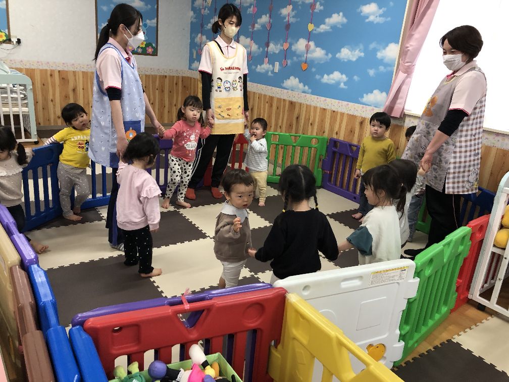 今月の歌のひなまつり、ゆきのペンキやさんを歌ったり、お名前呼びでは大きな声で返事をしていました。