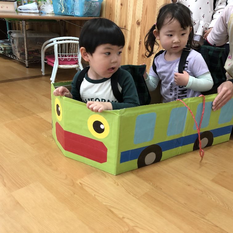 今日はお部屋の中で遠足の練習をして楽しみました!まずはリュックを背負って歩く練習です☺