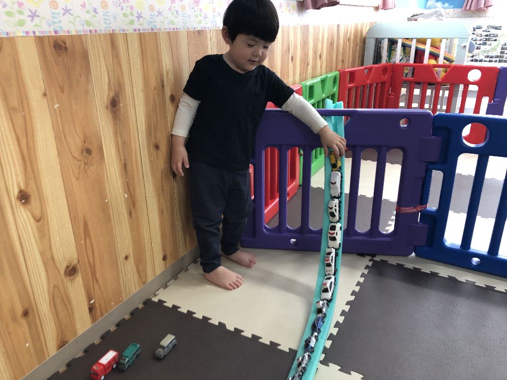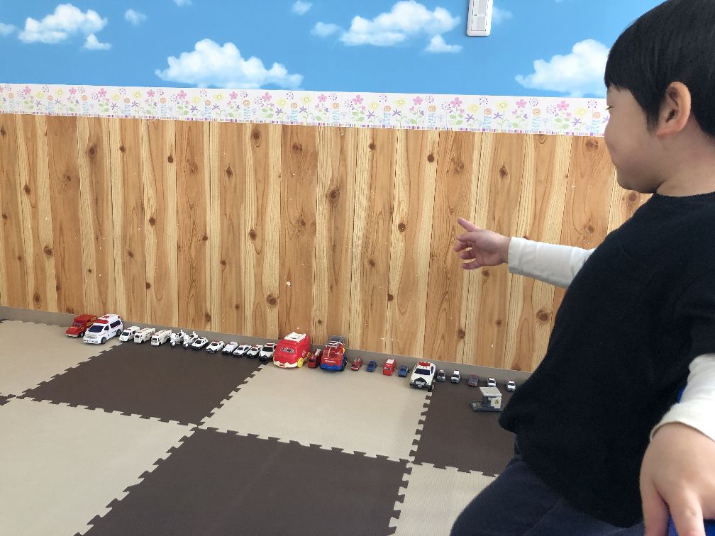 出発前には働く車を聞いたり、車を並べたりして遊びました。