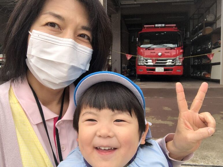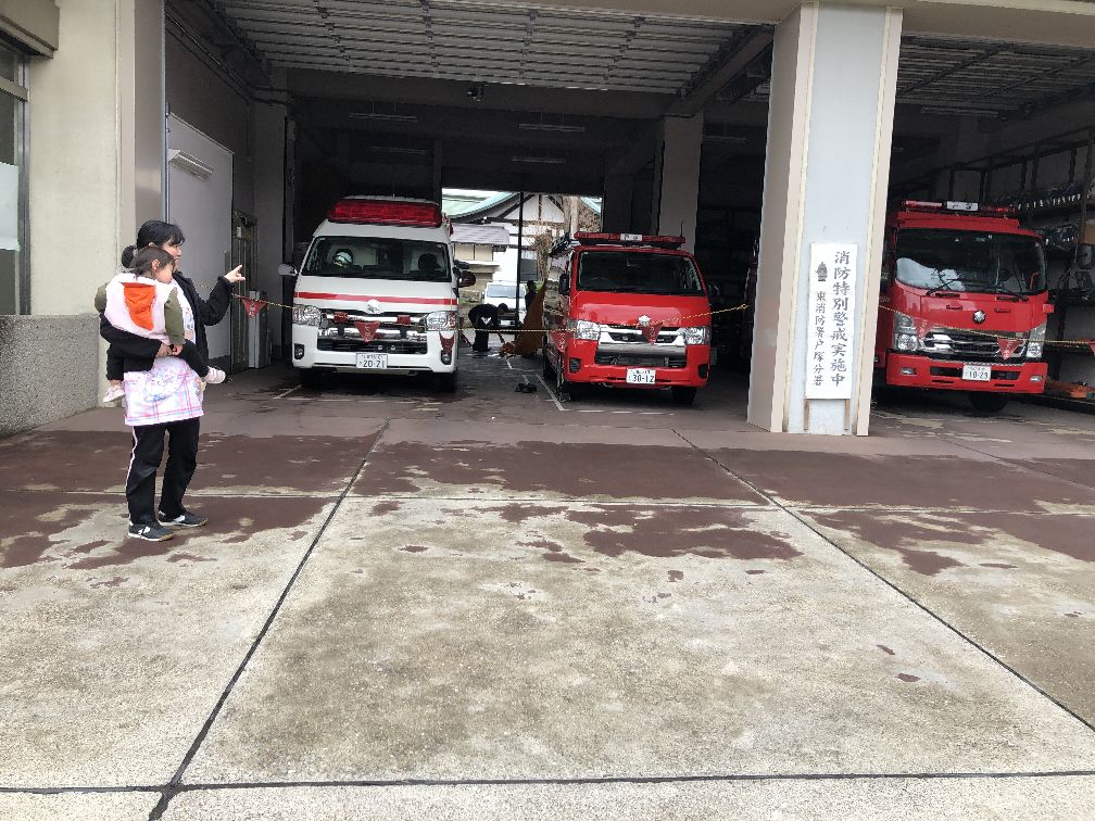 消防車、電車などが大好きなお友だちがいるので消防車見学に行きました。